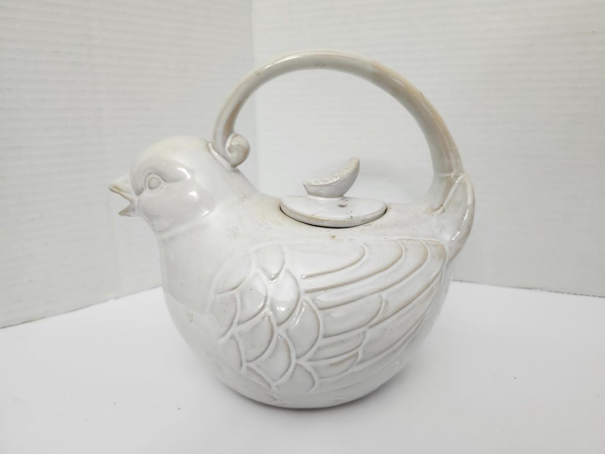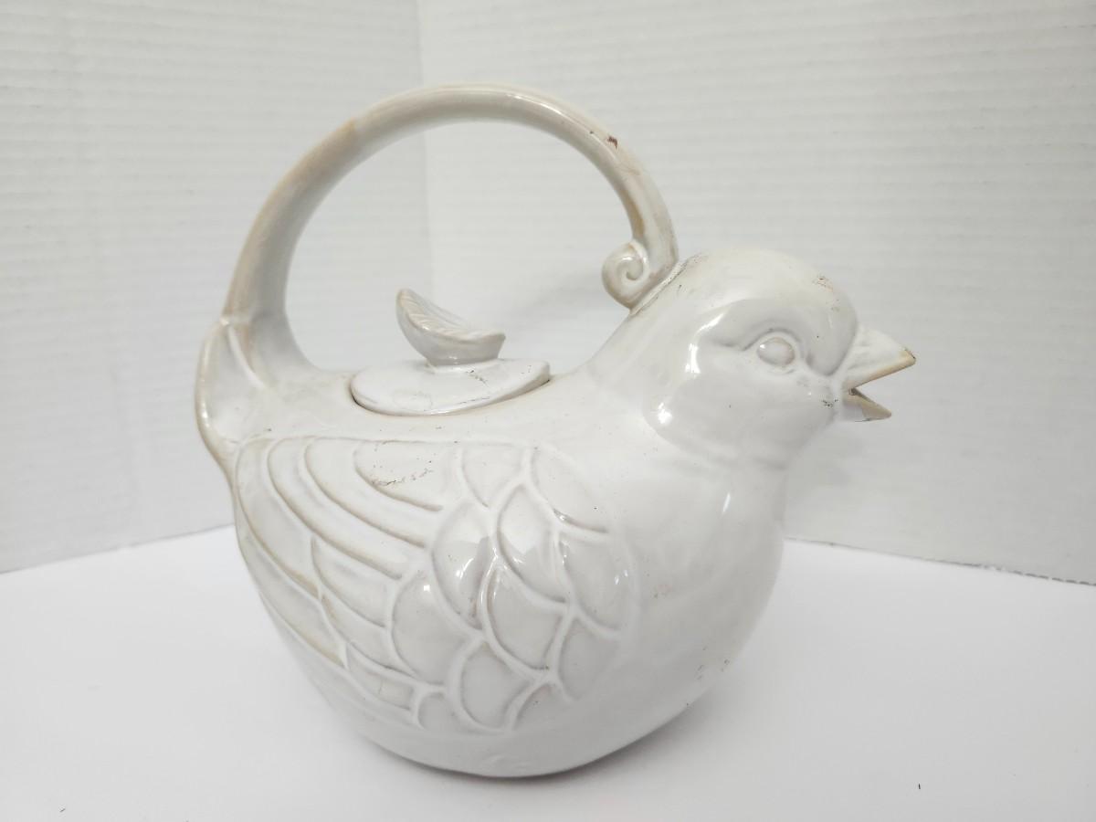World Market White Ceramic Bird Teapot Figural Lidded Tea Pot Made in China