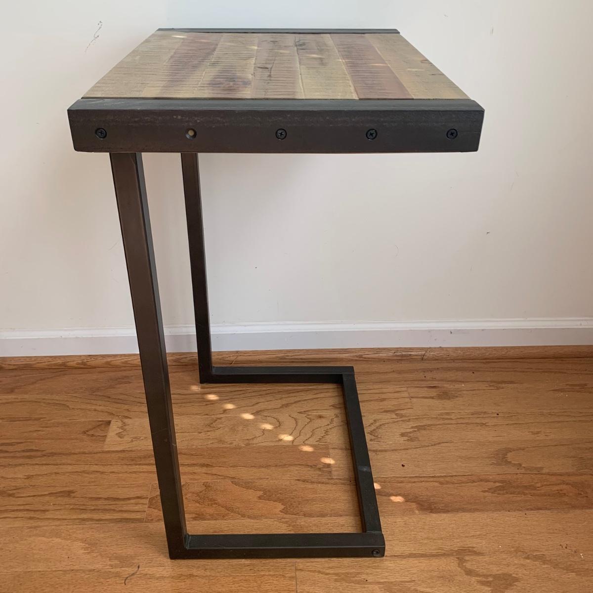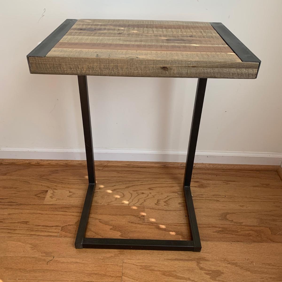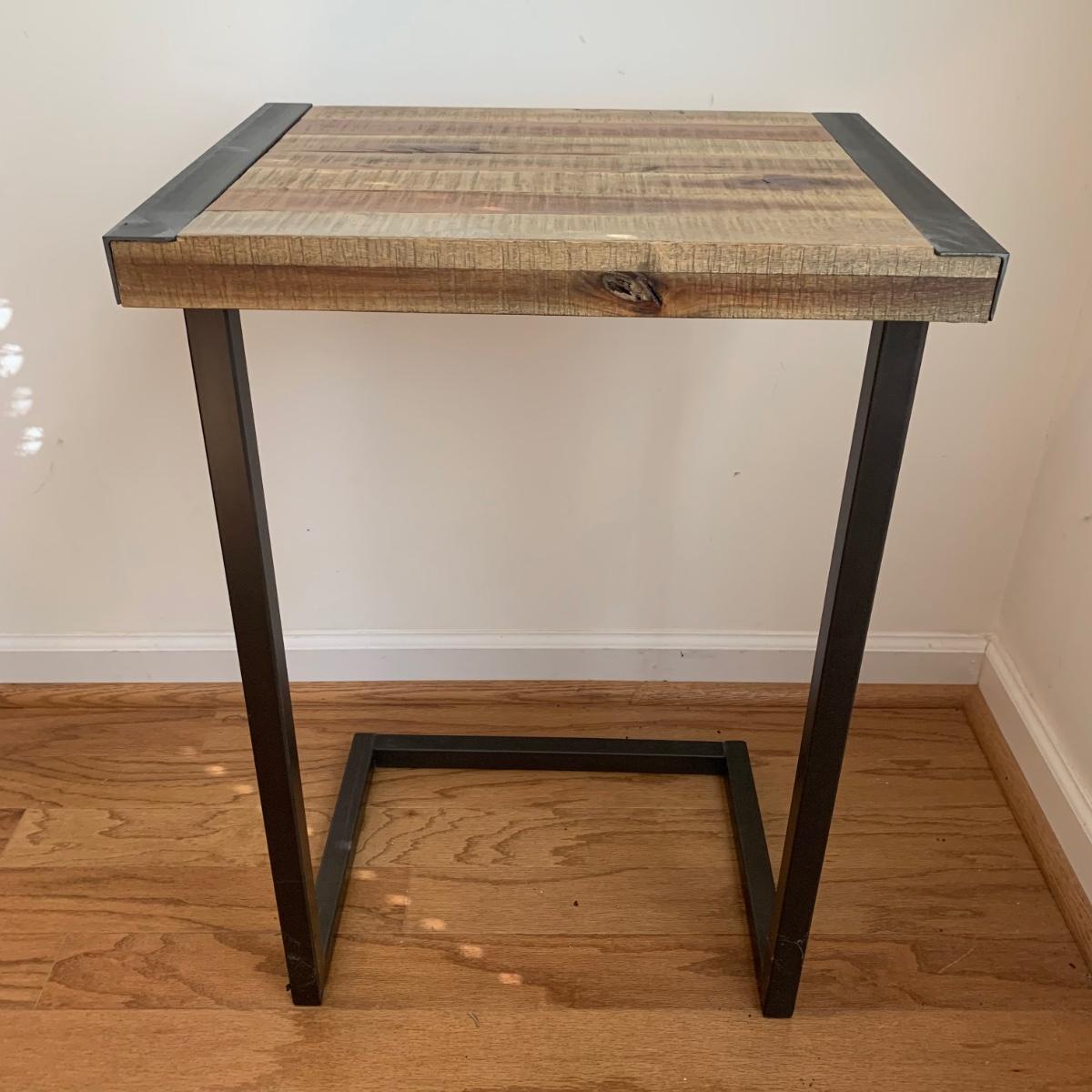 This nice C table could work great as a side table or a sofa table. It has a metal base and a wooden surface. A sticker on the underneath side shows that it is from World Market. It measures 18.5” x 14.25” x 25.75”. It’s in great condition. Local pickup only.