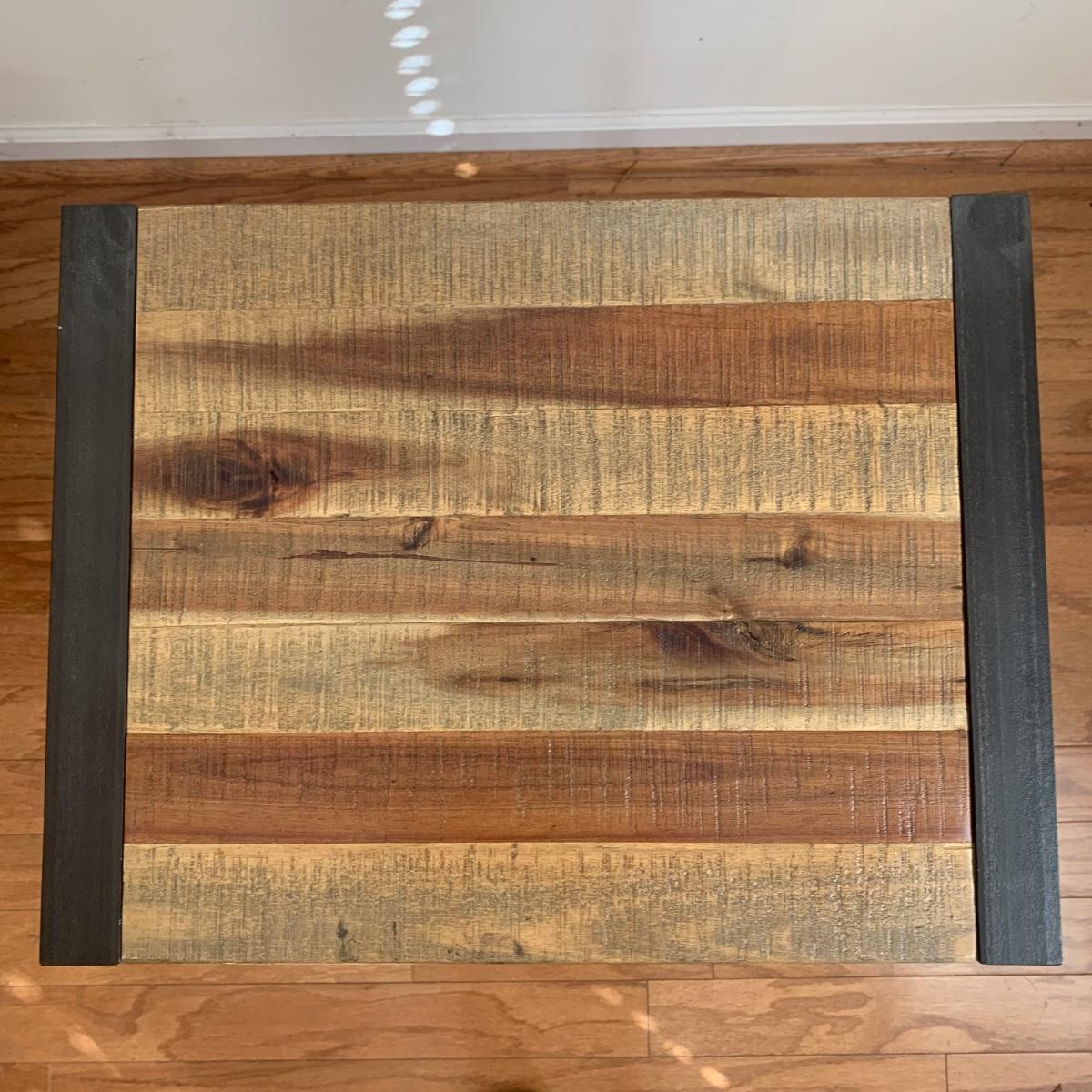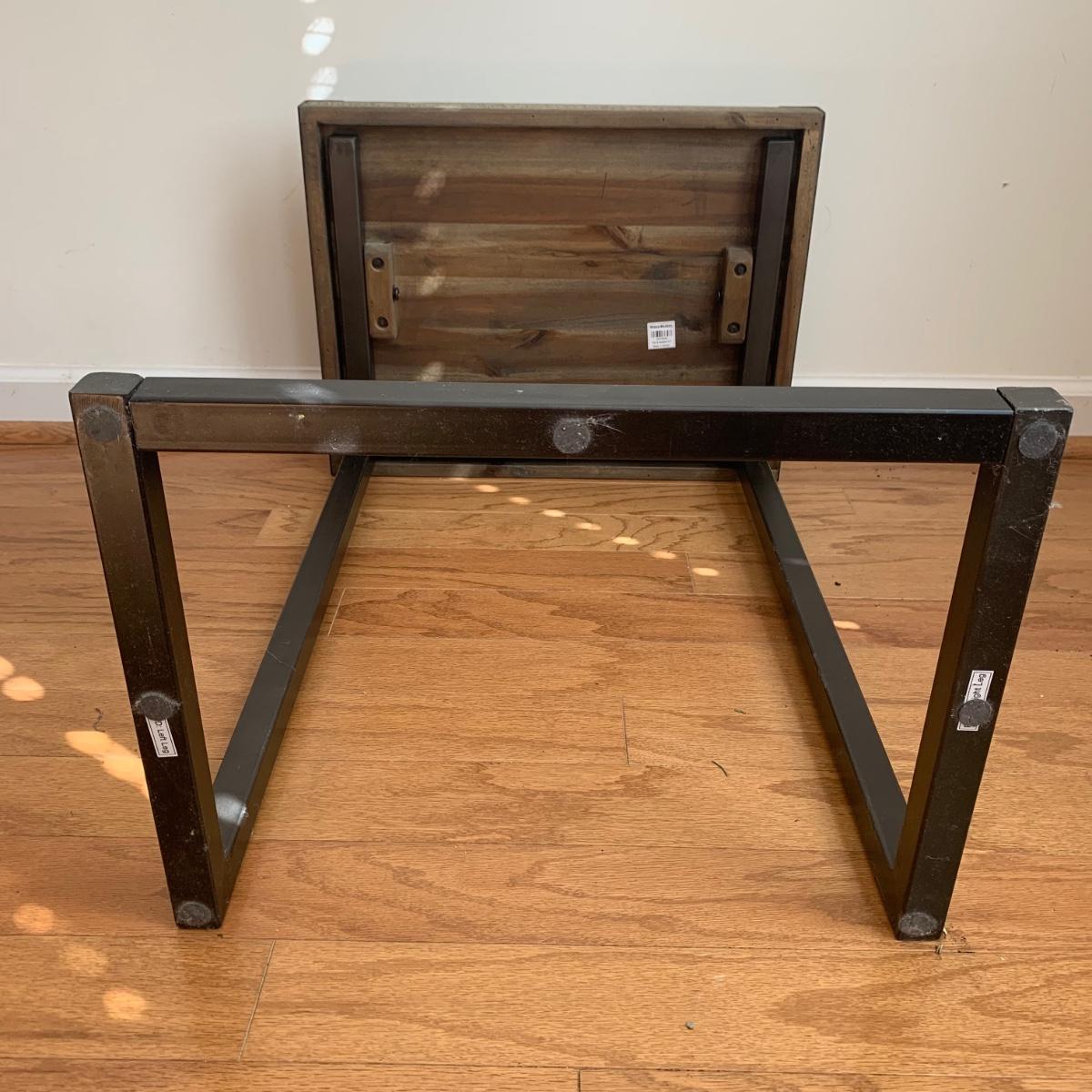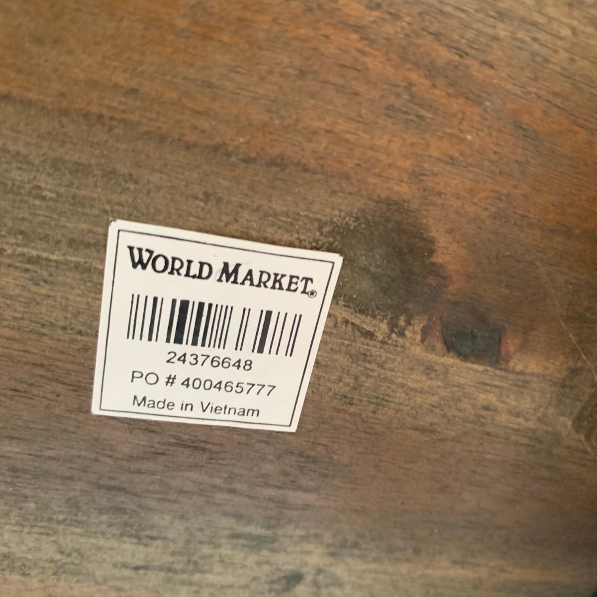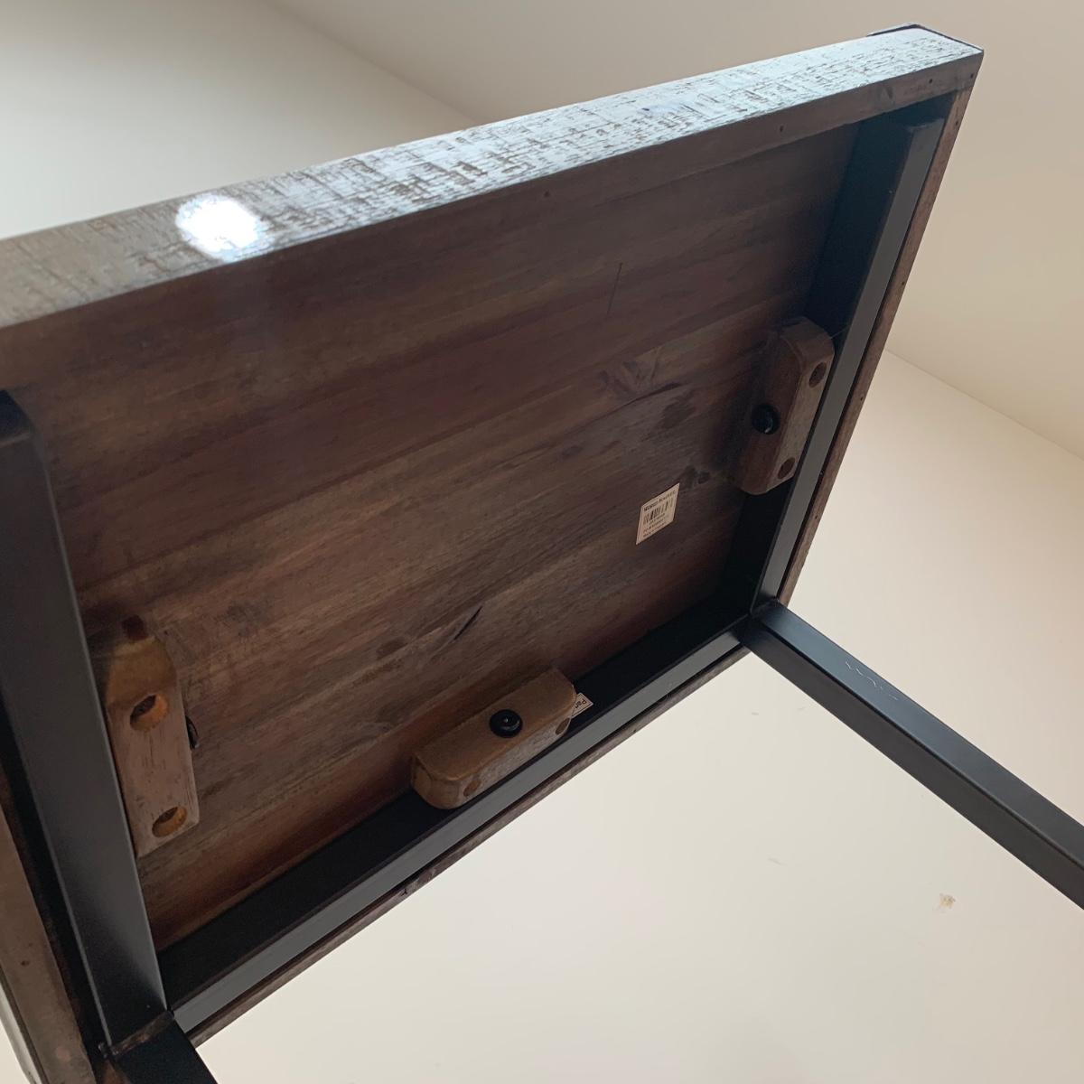 This nice C table could work great as a side table or a sofa table. It has a metal base and a wooden surface. A sticker on the underneath side shows that it is from World Market. It measures 18.5” x 14.25” x 25.75”. It’s in great condition. Local pickup only.