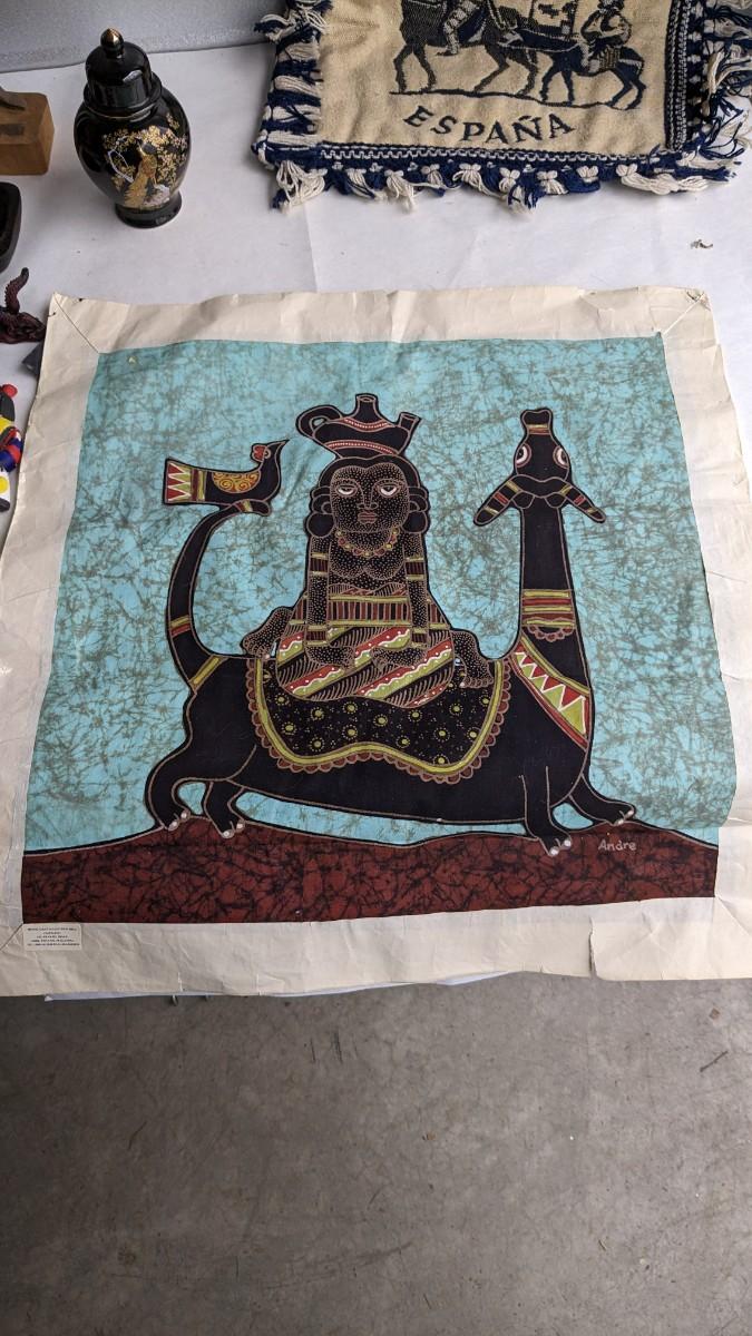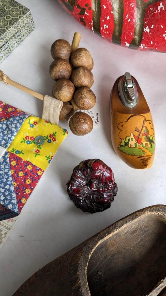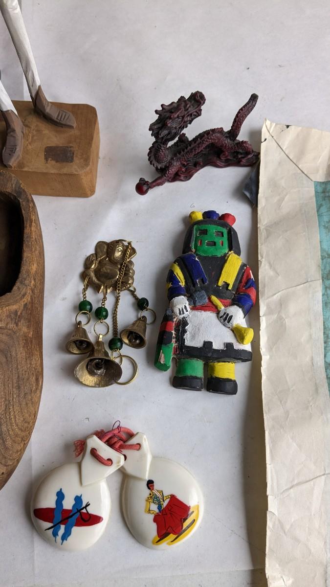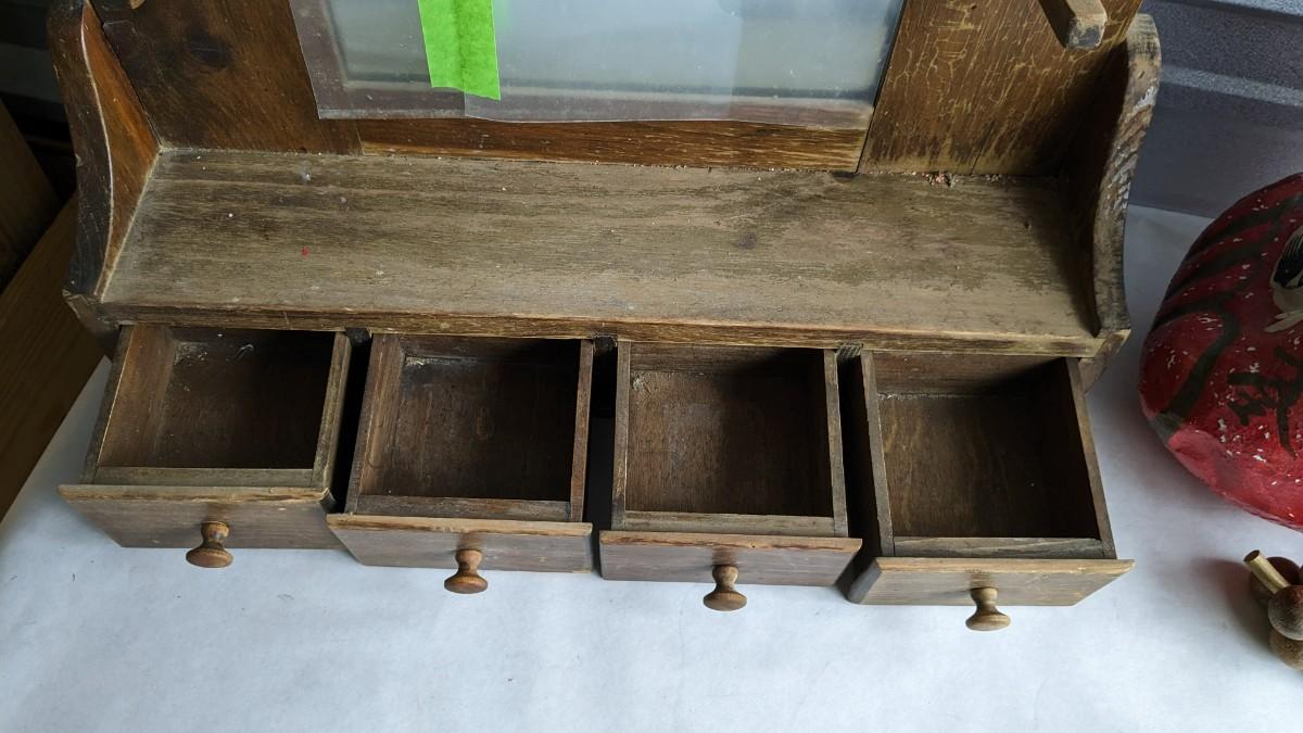a great little array of vintage foreign country goodies with a beautiful 21.5"x5.25"x29.75" hall mirror with hooks and 4 drawers. Pieces from Asia, Mexico, Holland, Egypt, India, and more!! No shipping. 2616