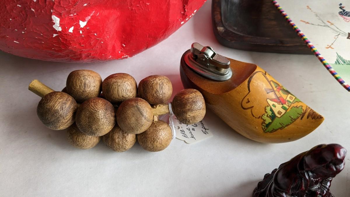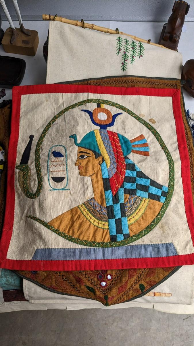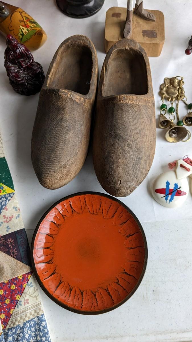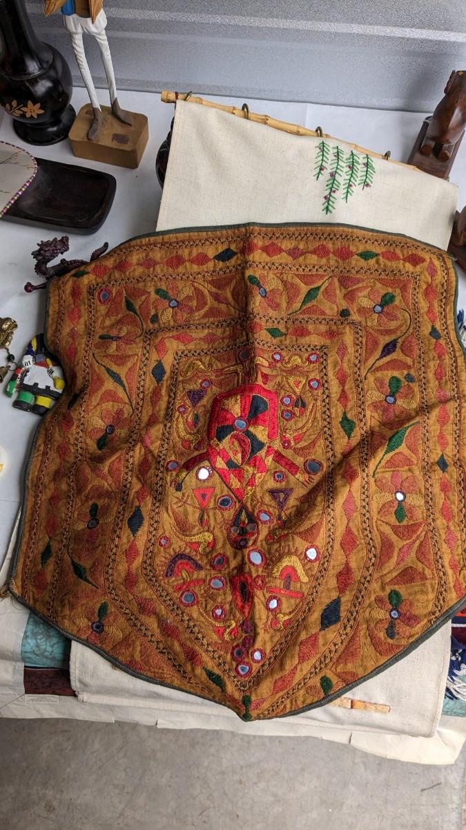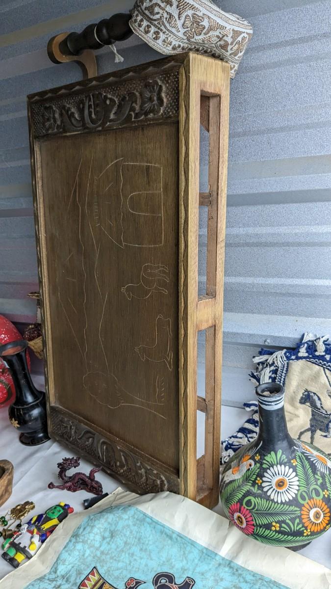 a great little array of vintage foreign country goodies with a beautiful 21.5"x5.25"x29.75" hall mirror with hooks and 4 drawers. Pieces from Asia, Mexico, Holland, Egypt, India, and more!! No shipping. 2616
