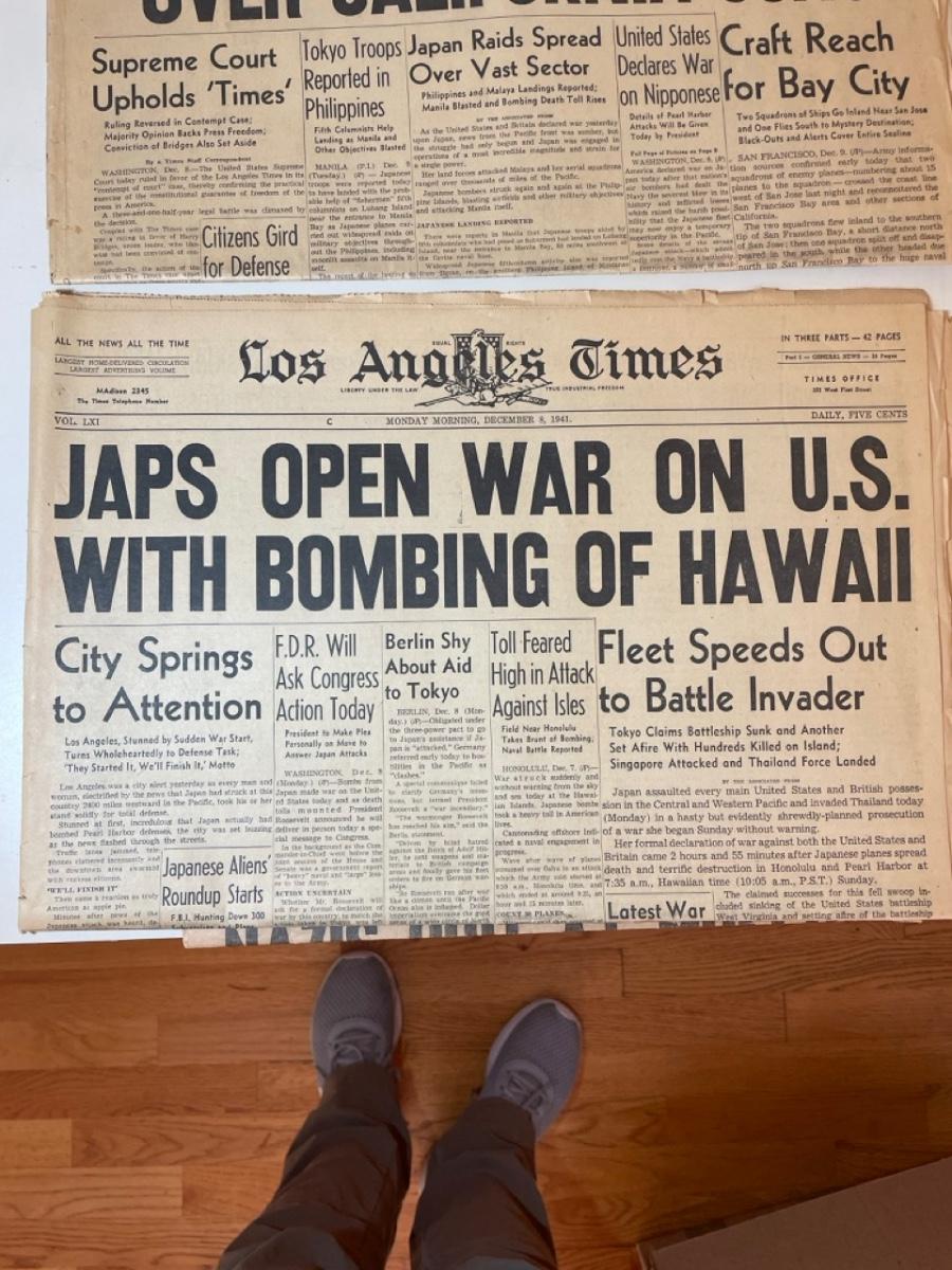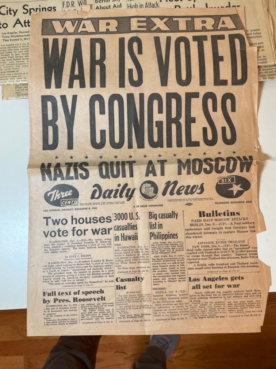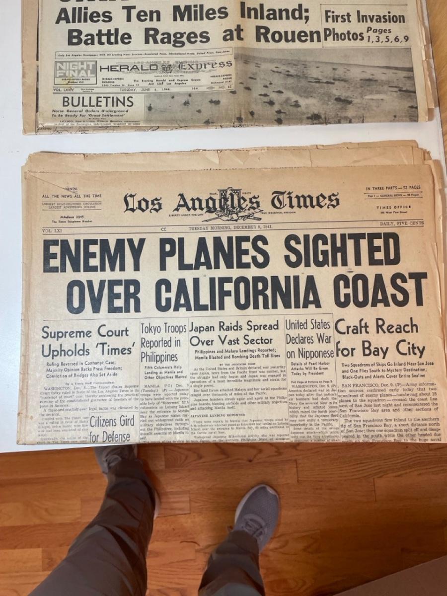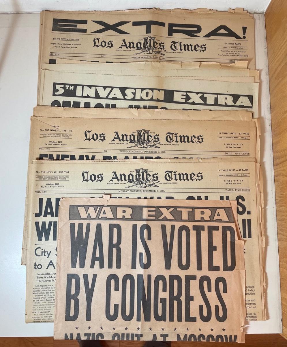 LA Times December 8, 1941; LA Daily News December 9, 1941; LA Times December 9, 1941; Herald Express June 6, 1944; LA Times June 6, 1944