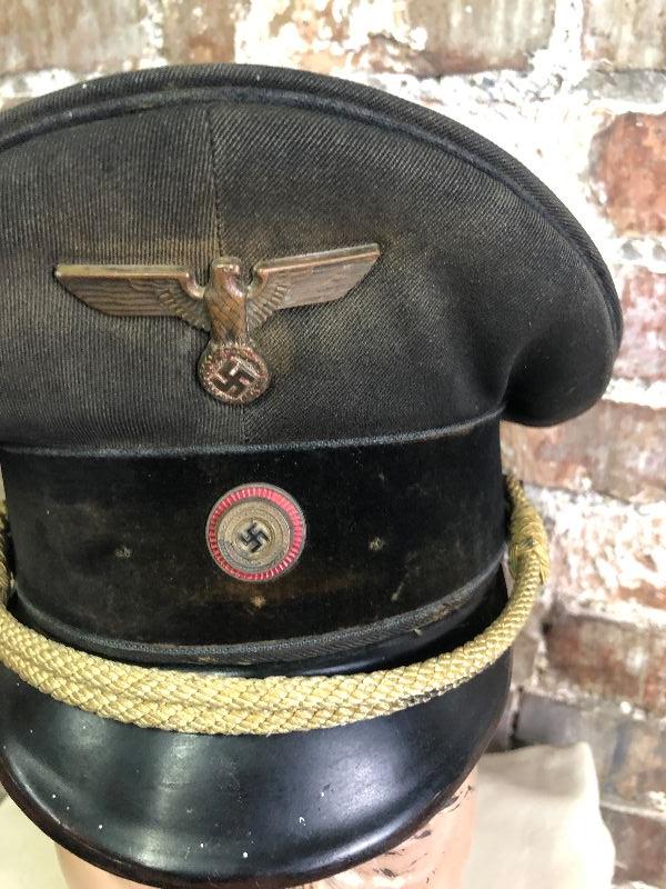 World War Two German Political Officers Visor Cap Authentic war memorabilia. Hat shows wear and some damage. The closet match we could find is a political officers cap but not 100 % sure. Color of the cap is a dark brown. Shipping anywhere in the US for $14.