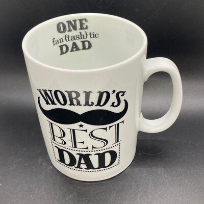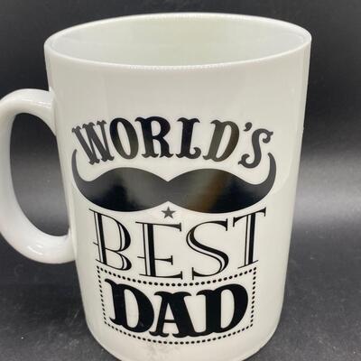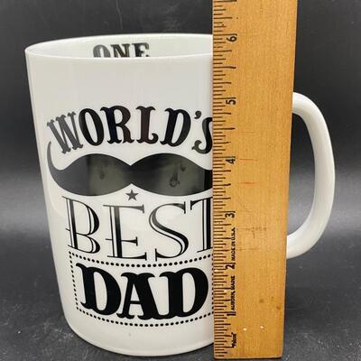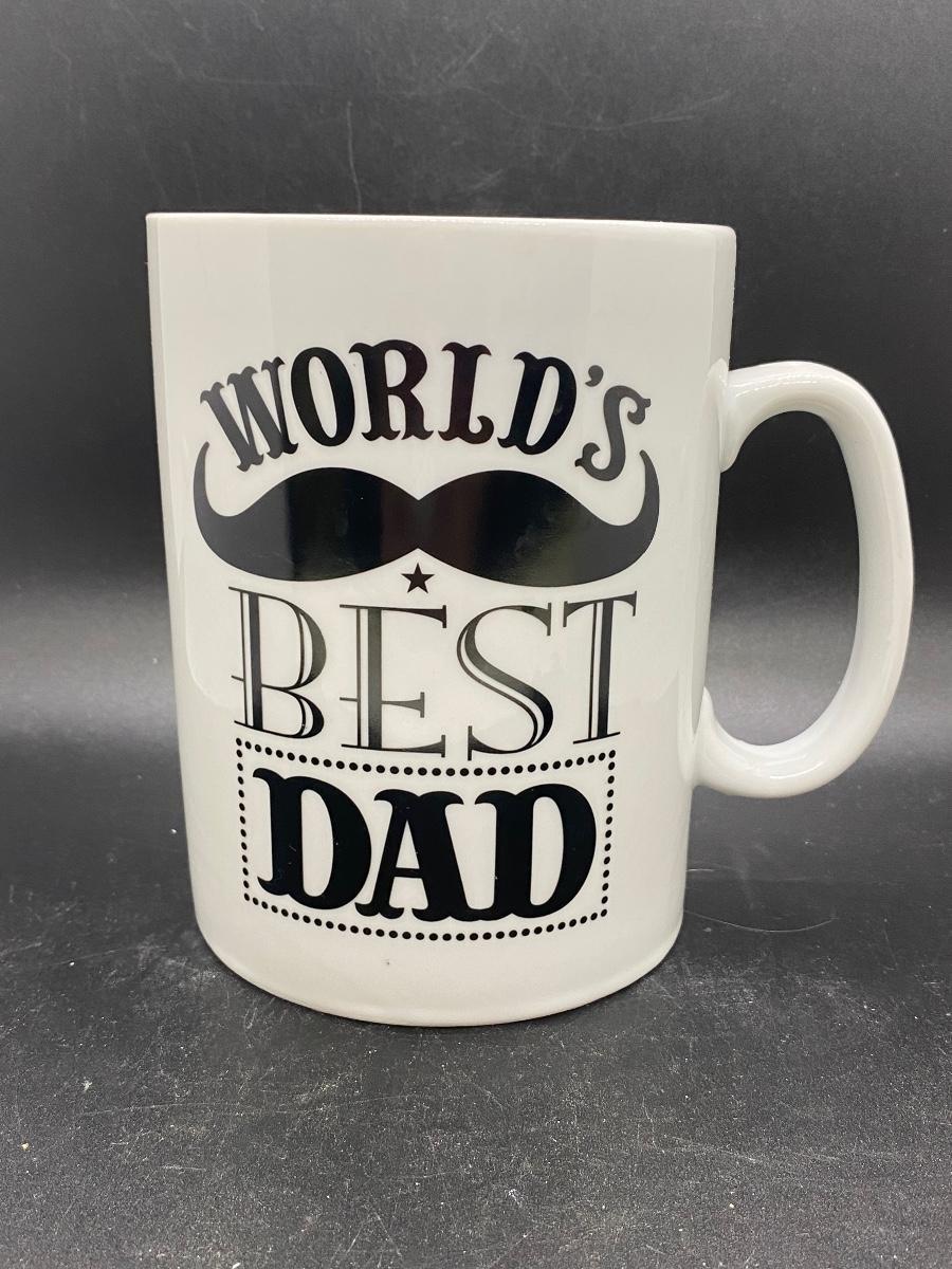 World's Best Dad Mustache Ceramic Coffee Mug, there are no significant chips or cracks to the mug and is in good useable condition. Check pictures for more details and for sizing.