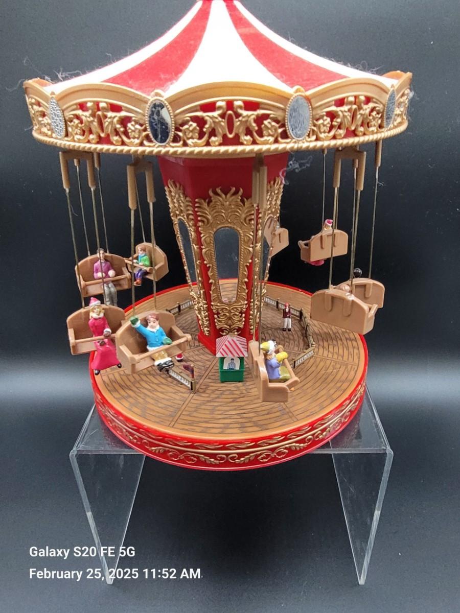 Vintage Musical Swing Carousel, Victorian dress people, musical,