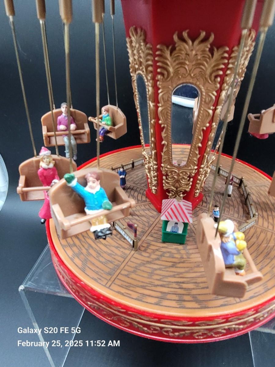 Vintage Musical Swing Carousel, Victorian dress on people, musical,