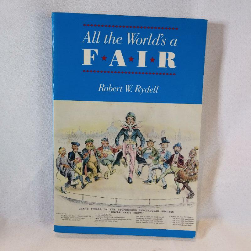 ALL THE WORLD’S A FAIR by Robert W. Rydell. 1987, published by the University of Chicago Press. 383 pp. indexed SOFTBOUND. Subtitled, “Visions of Empire at American International Expositions 1876 ““ 1916”. There is a 2” crease line on the rear bottom corner, and there is quite light yellow highlighting on a few lines on random pages, from pg. 11 to pg. 55. The highlighting is very faint and does NOT affect readability. Prior owner’s name atop the 1st blank flyleaf, else VERY GOOD.
