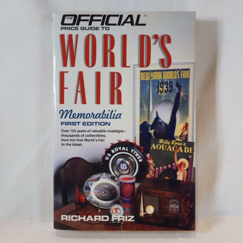 OFFICIAL PRICE GUIDE TO WORLD’S FAIR MEMORABILIA -- FIRST EDITION by Richard Friz. 1989, published by House of Collectibles. 355 pp. indexed SOFTBACK. Some photos interspersed throughout, with color plates in the center. At random, there are a few listings circled, but that in no way affects the readability. Prior owner’s name atop the half-title page. VERY GOOD +.