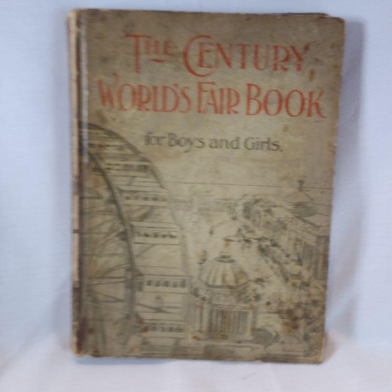 THE CENTURY WORLD’S FAIR BOOK FOR BOYS AND GIRLS by Tudor JENKS, 1893 published by The Century Co. 246 pp. Filled with sketches & photographs from the 1893 Chicago World’s Fair. Two prior owner’s names on the 1st blank flyleaf, otherwise unmarked. Detailed Fair map just inside the front board. Externally soiled, showing much edge & corner wear, BUT Fully Intact.