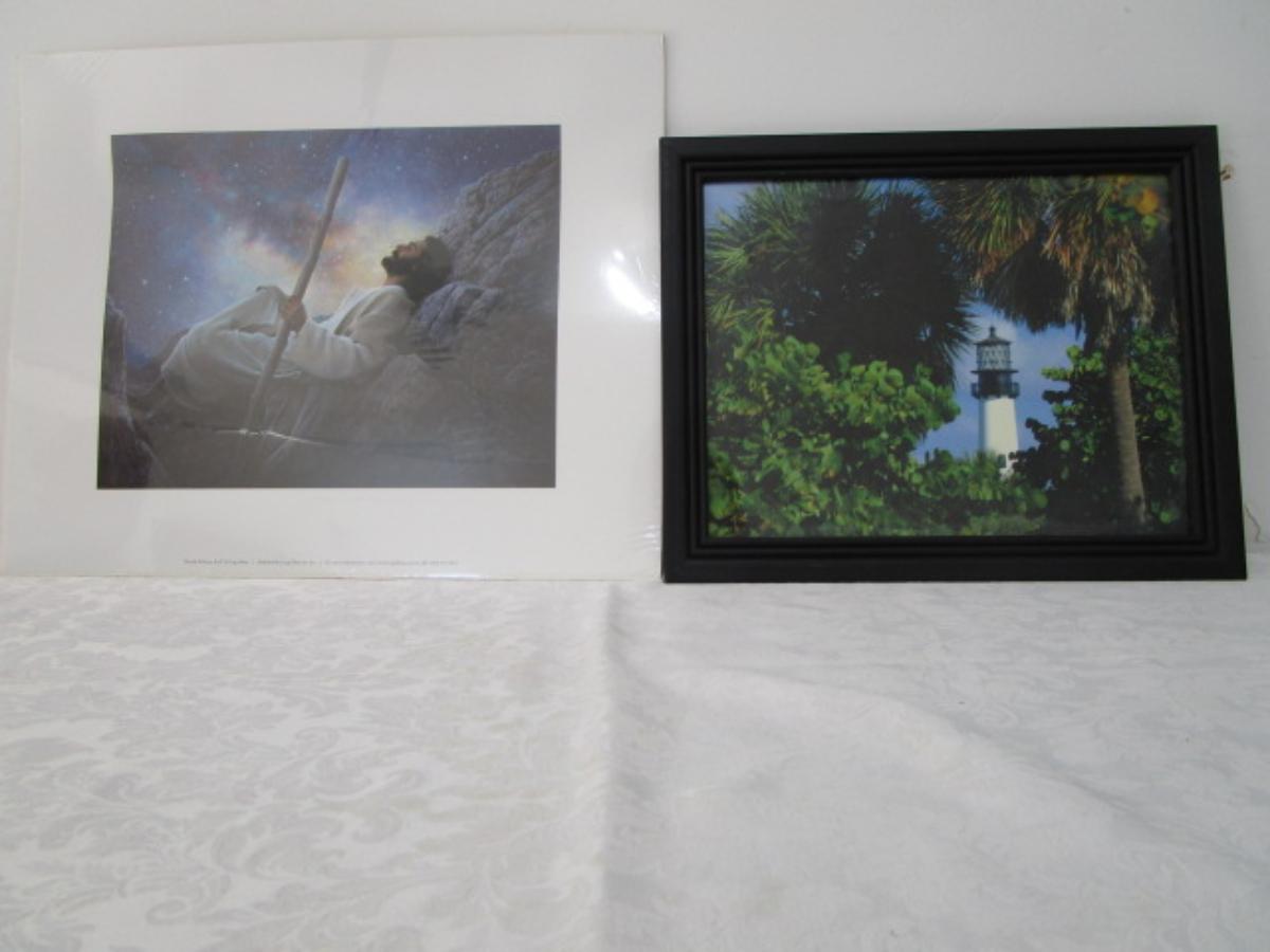 "Worlds Without End" unframed picture, framed lighthouse picture