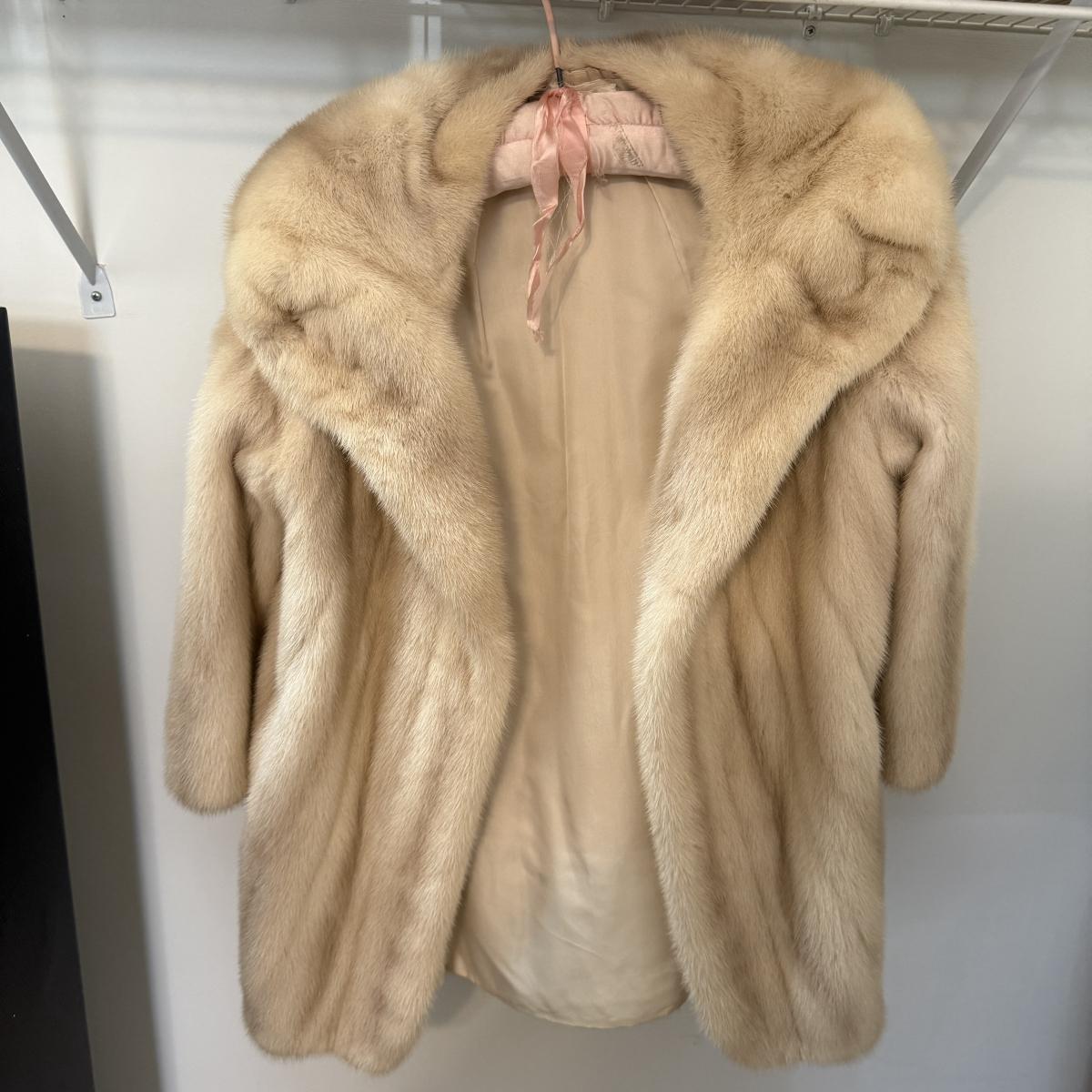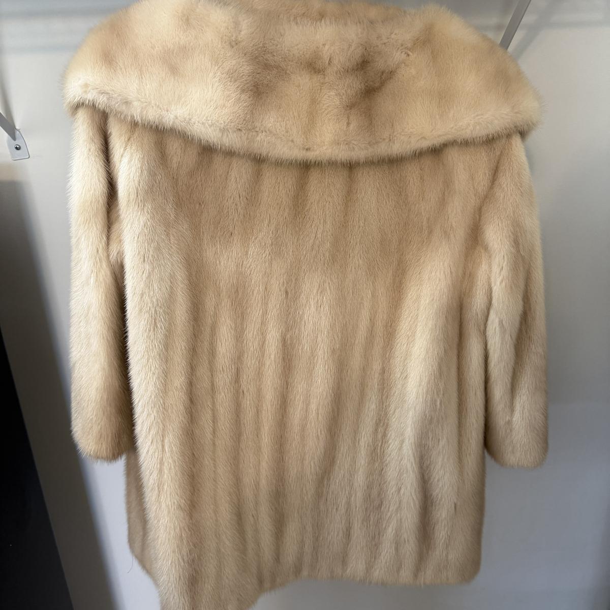 Stunning pale tan Wormsers fur coat. Coat appears to be mink but we cannot authenticate it. See pictures for measurements.