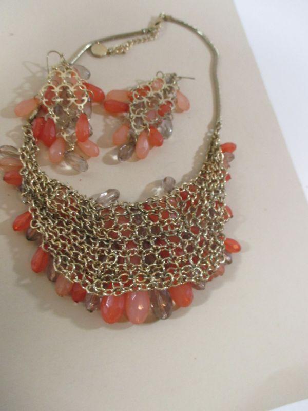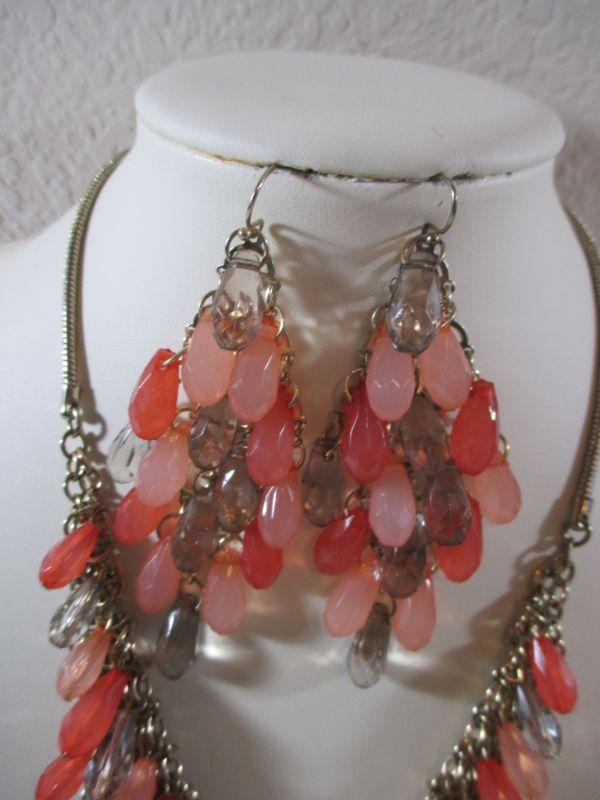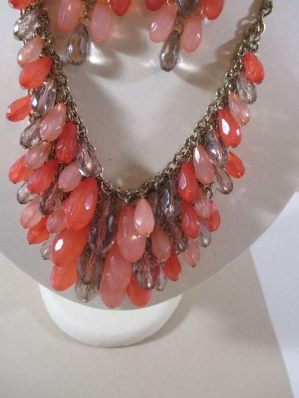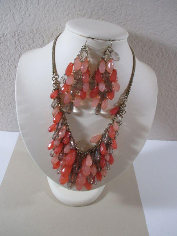 Worthington Dangle Bib Pink/Coral Rhinestones Gorgeous Vintage inspired / Earrings Set