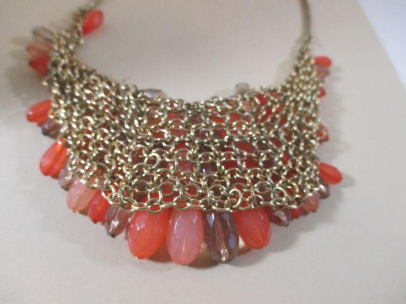 Worthington Dangle Bib Pink/Coral Rhinestones Gorgeous Vintage inspired/Earrings that match