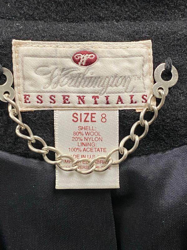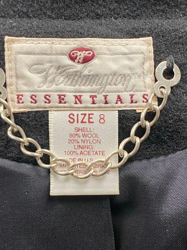 Worthington Essentials woman's jacket. Black peacoat style jacket. Thick, mostly wool blend. Single button closure. Size 8. Front pockets. Good condition, may be dusty from storage.