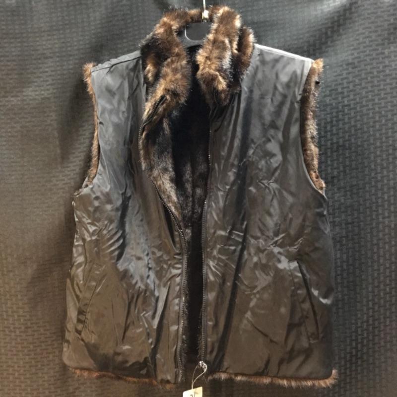 Worthington° Reversible Black/Brown Synthetic Fur Vest LG NWT YD#011-1120-00339