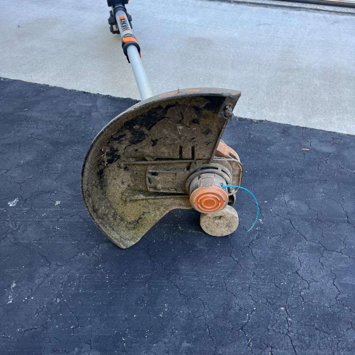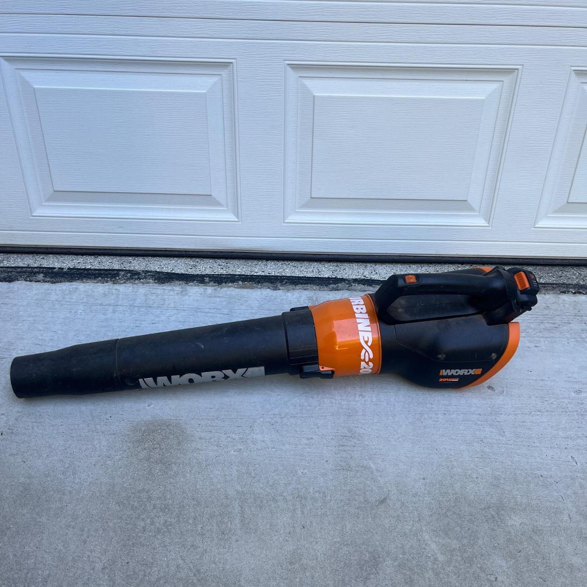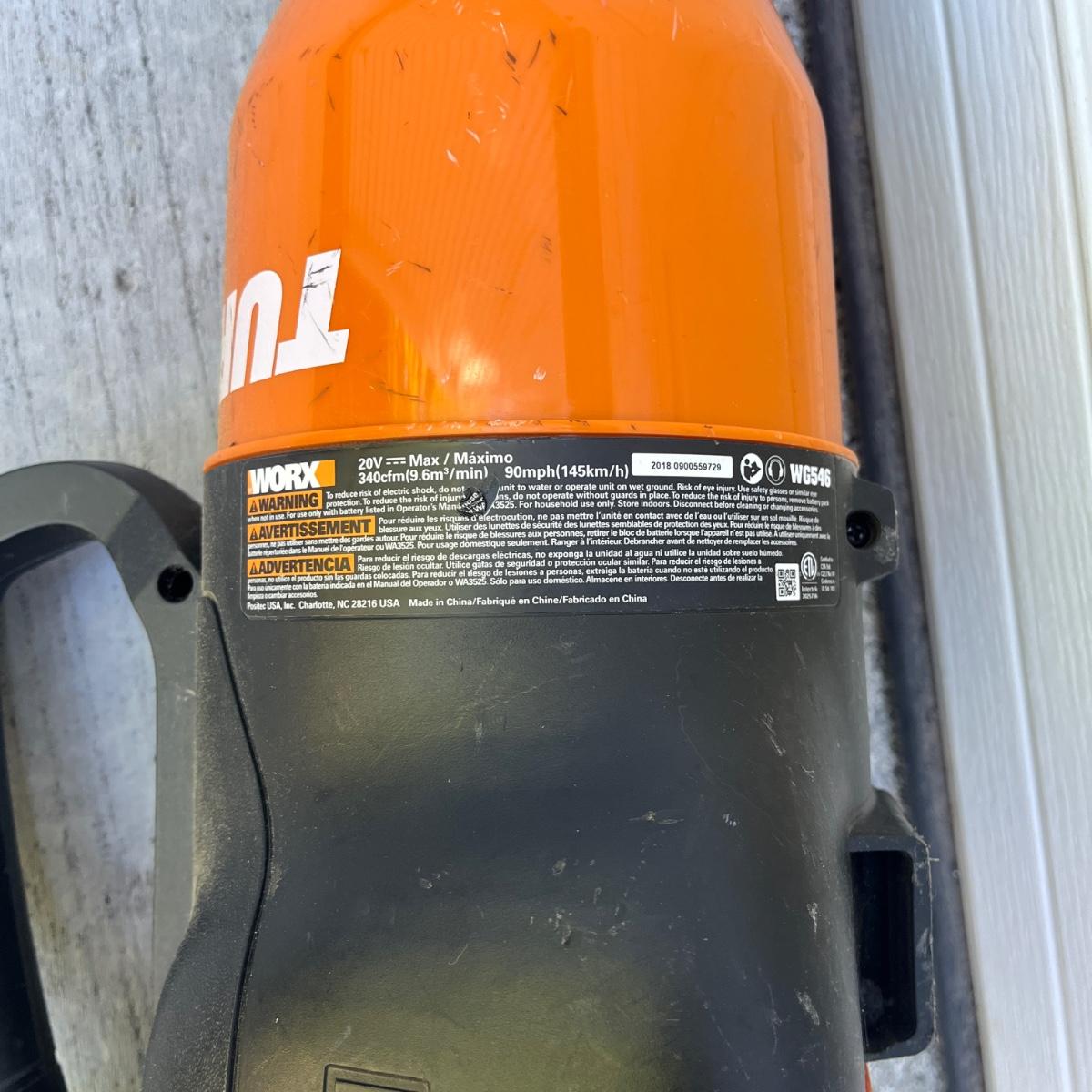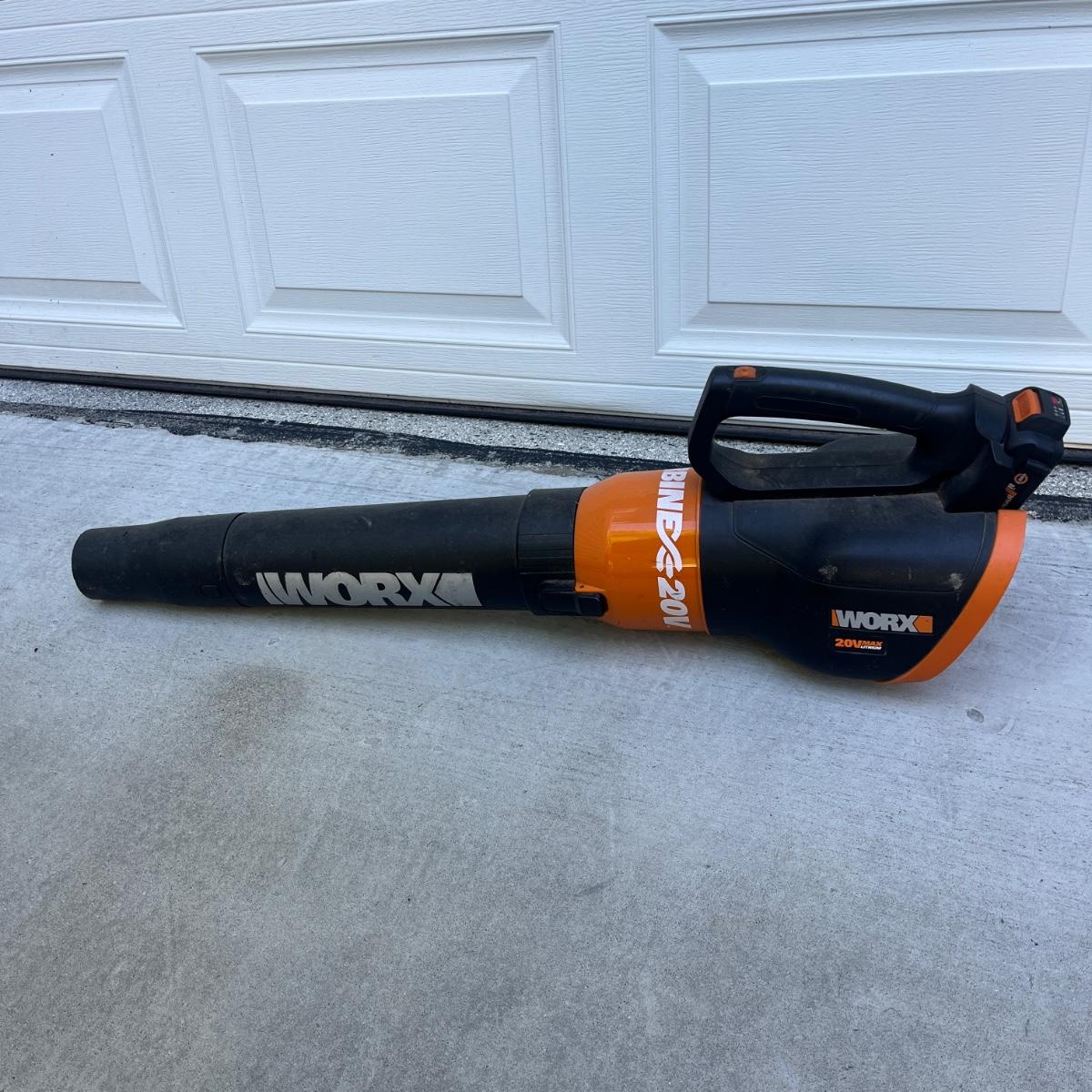 Lot includes a Worx 20V string trimmer/edger, blower , two batteries and one battery charger. String trimmer measures 1:” x 14” x 48”long. Both items powered on when trigger pulled.