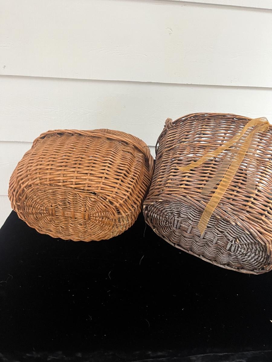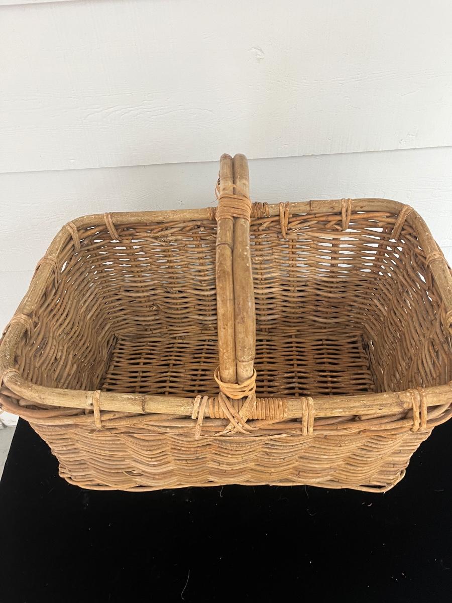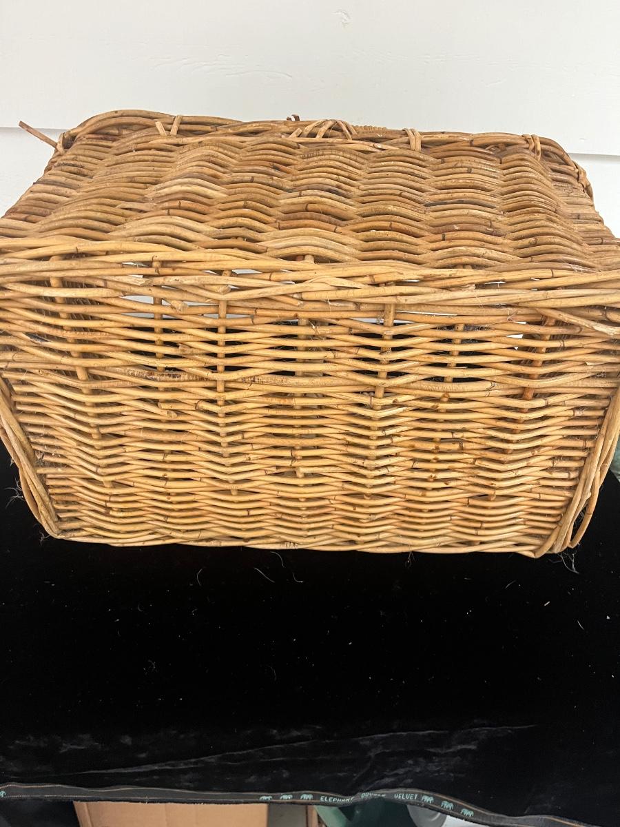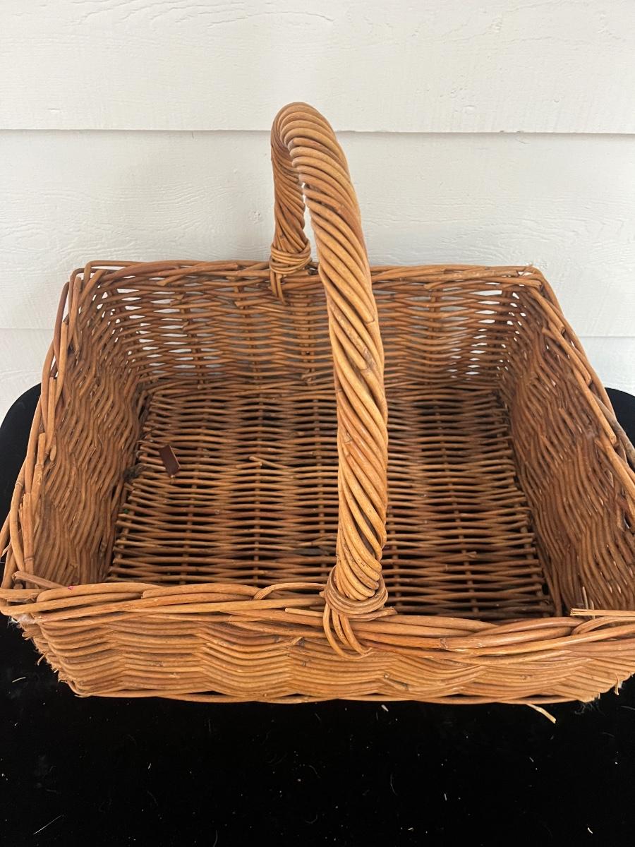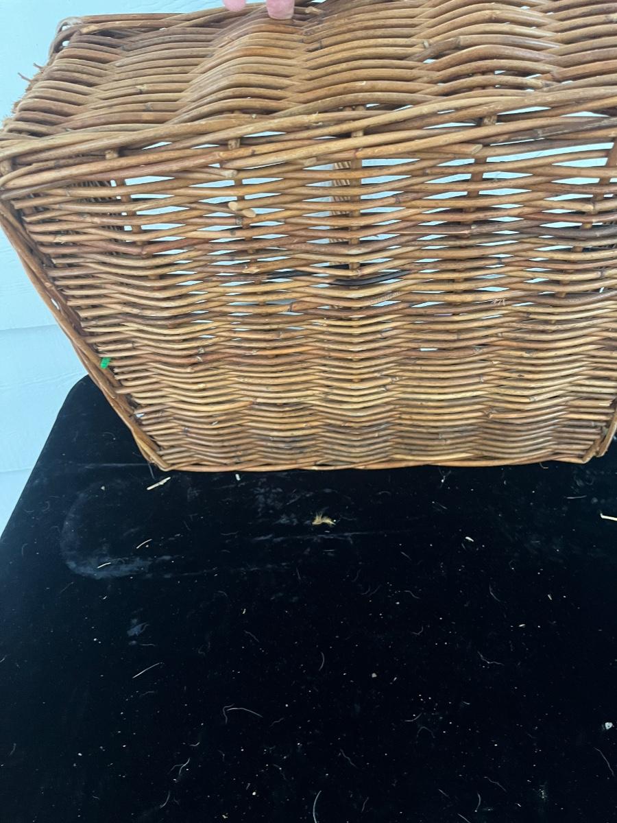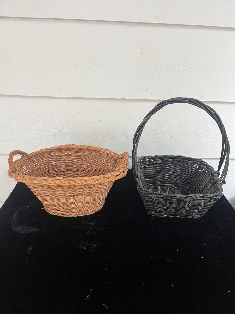 Lot includes two woven animals and an assortment of baskets in a variety of sizes and shapes. Some baskets have handles that are unraveling, see pictures. Largest basket measures 15” x 24” x 29”.