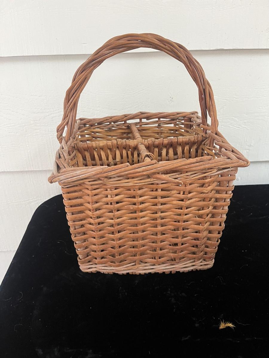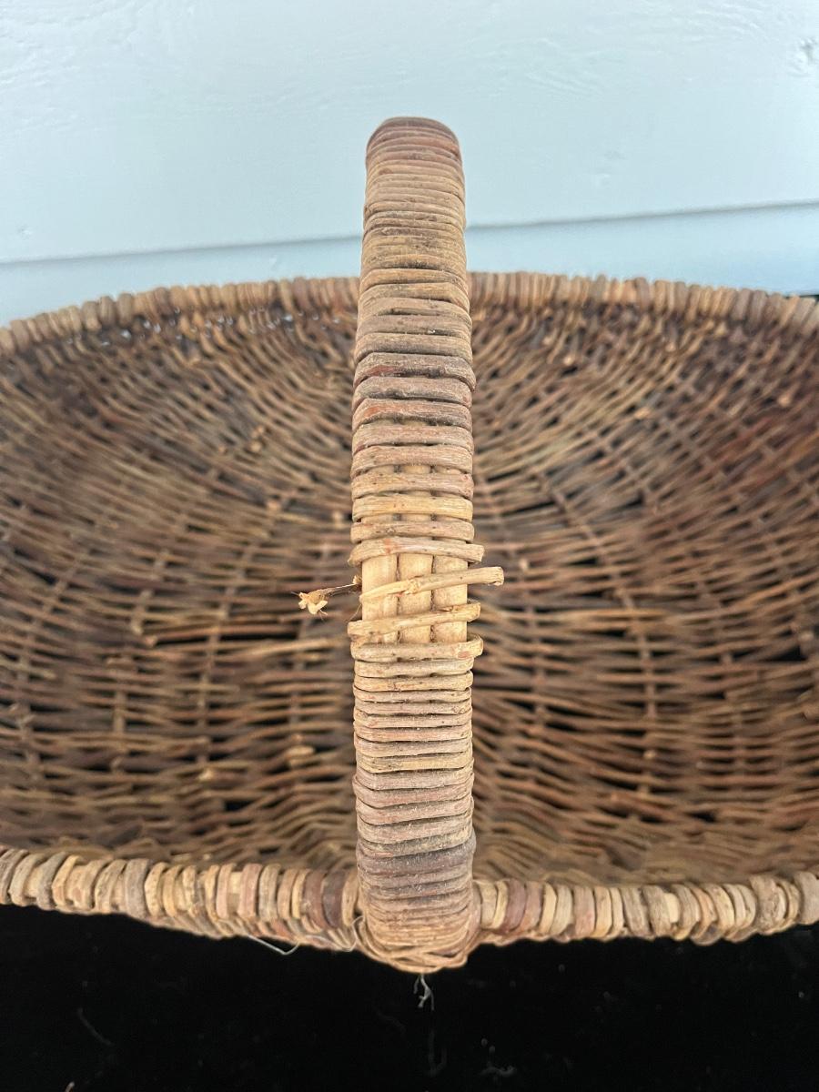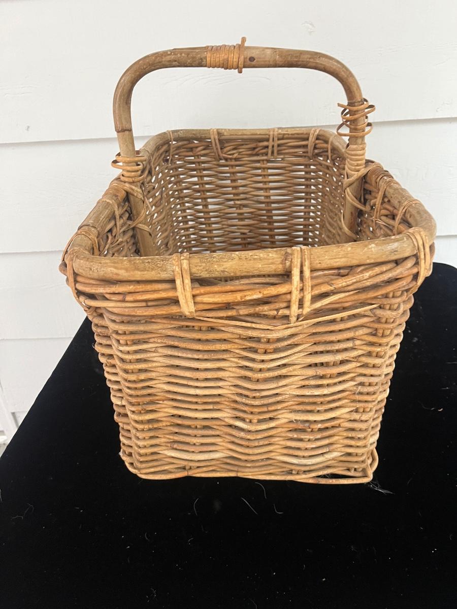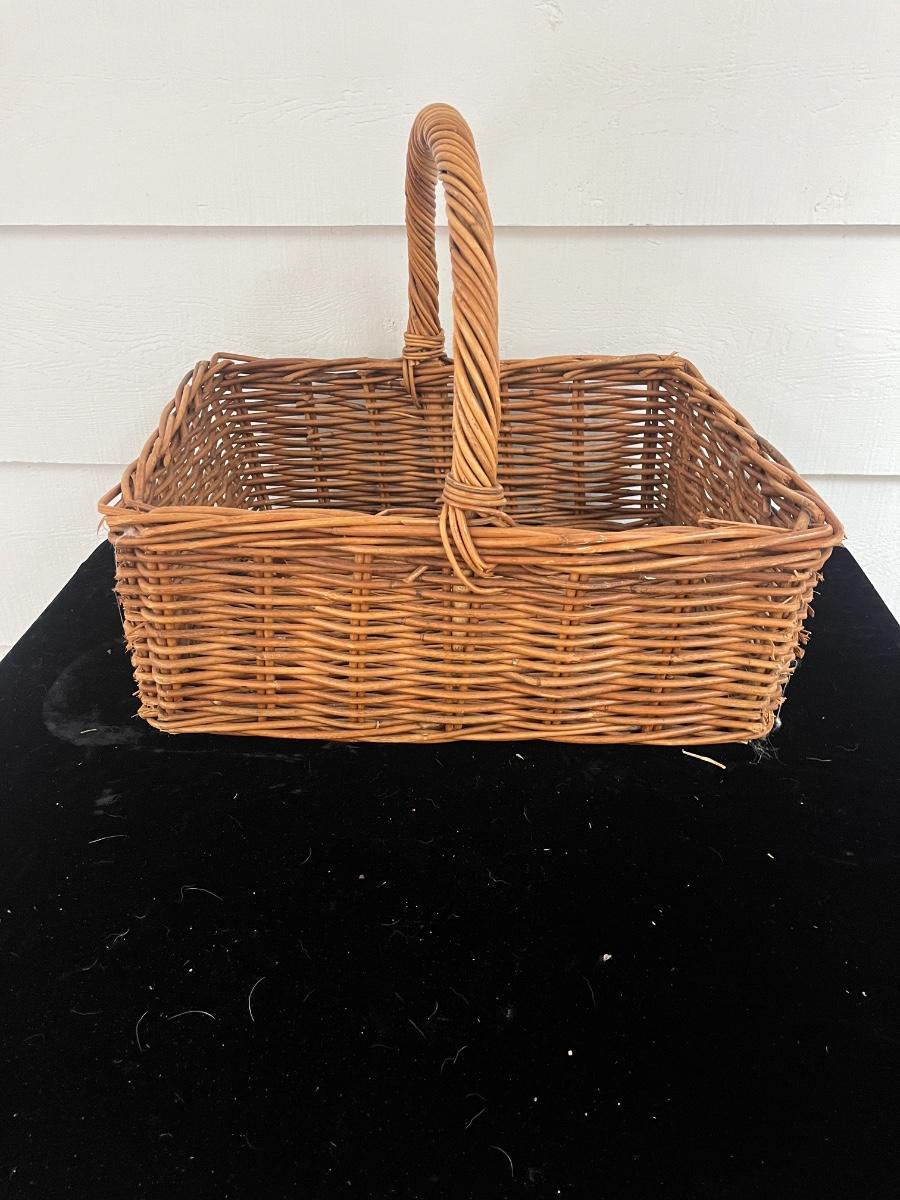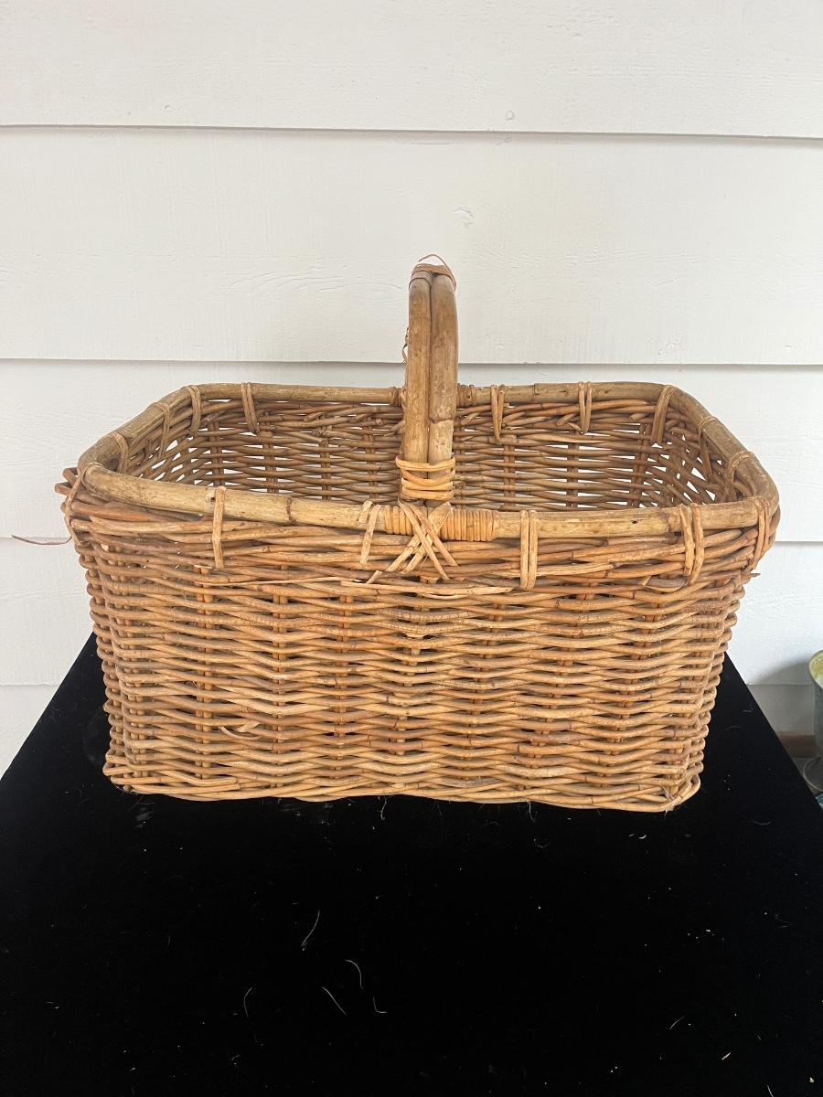 Lot includes two woven animals and an assortment of baskets in a variety of sizes and shapes. Some baskets have handles that are unraveling, see pictures. Largest basket measures 15” x 24” x 29”.