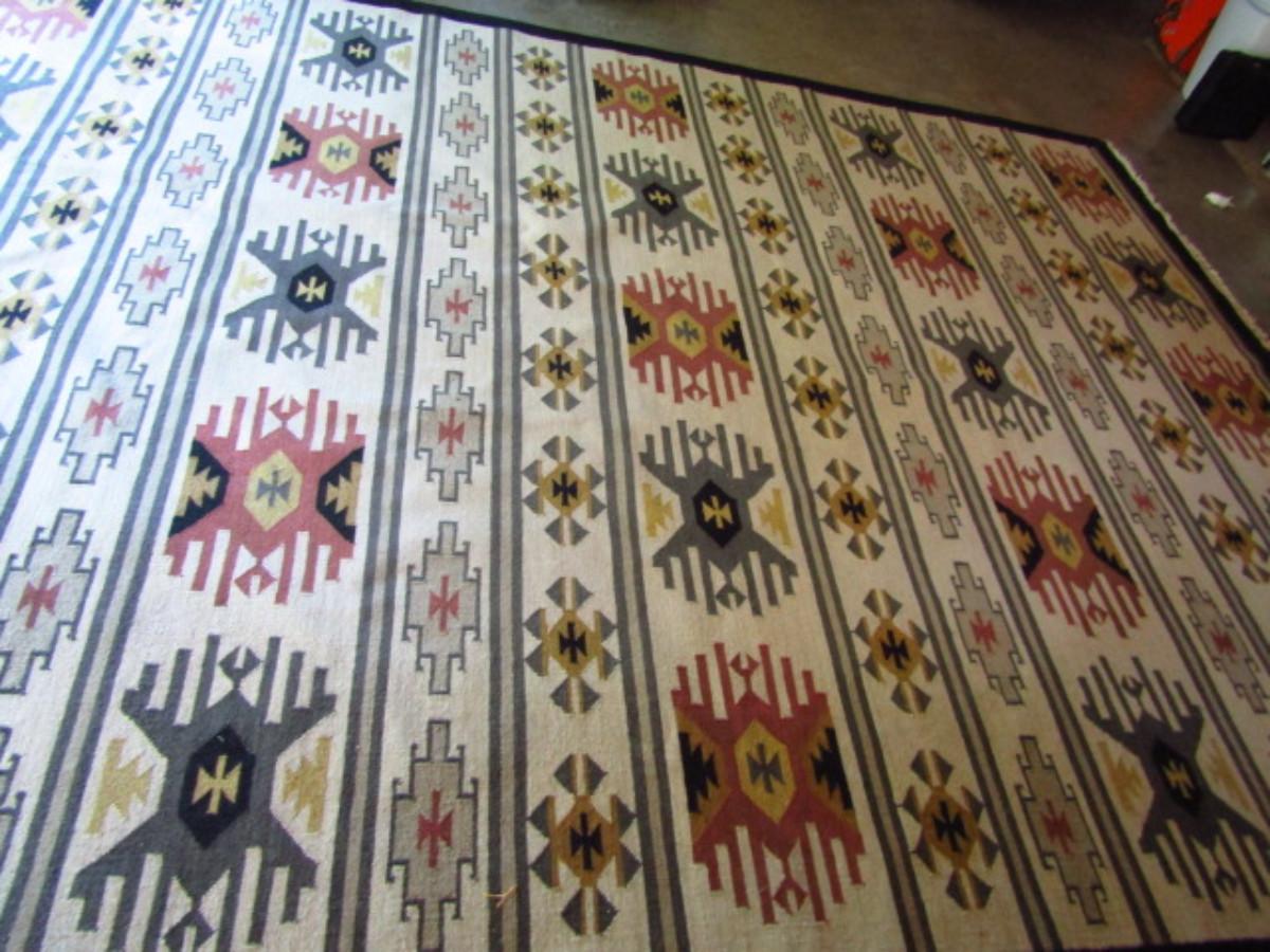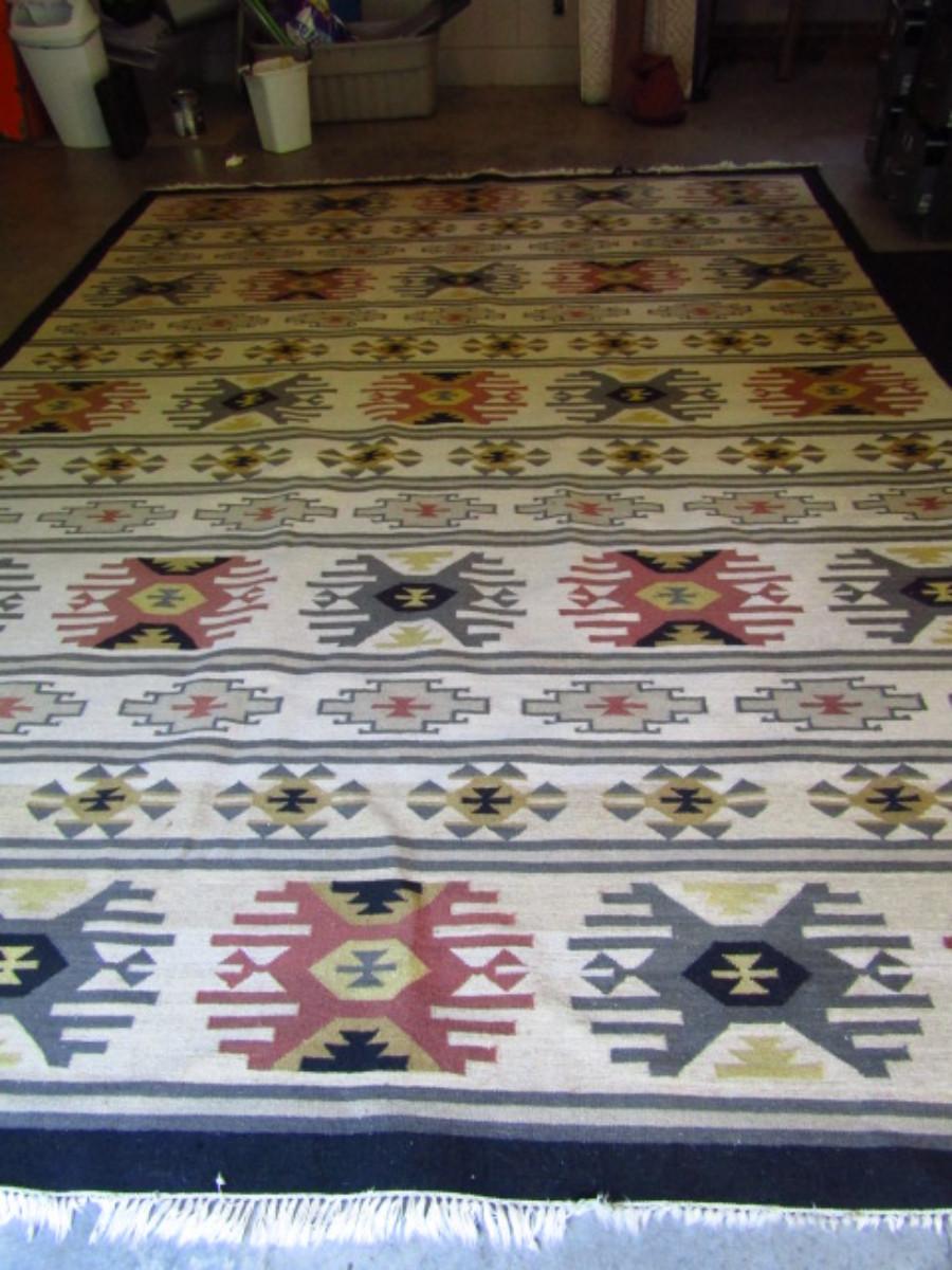 Woven Area Rug- Approx 124" x 103". Please see all pictures- one end has some damage.