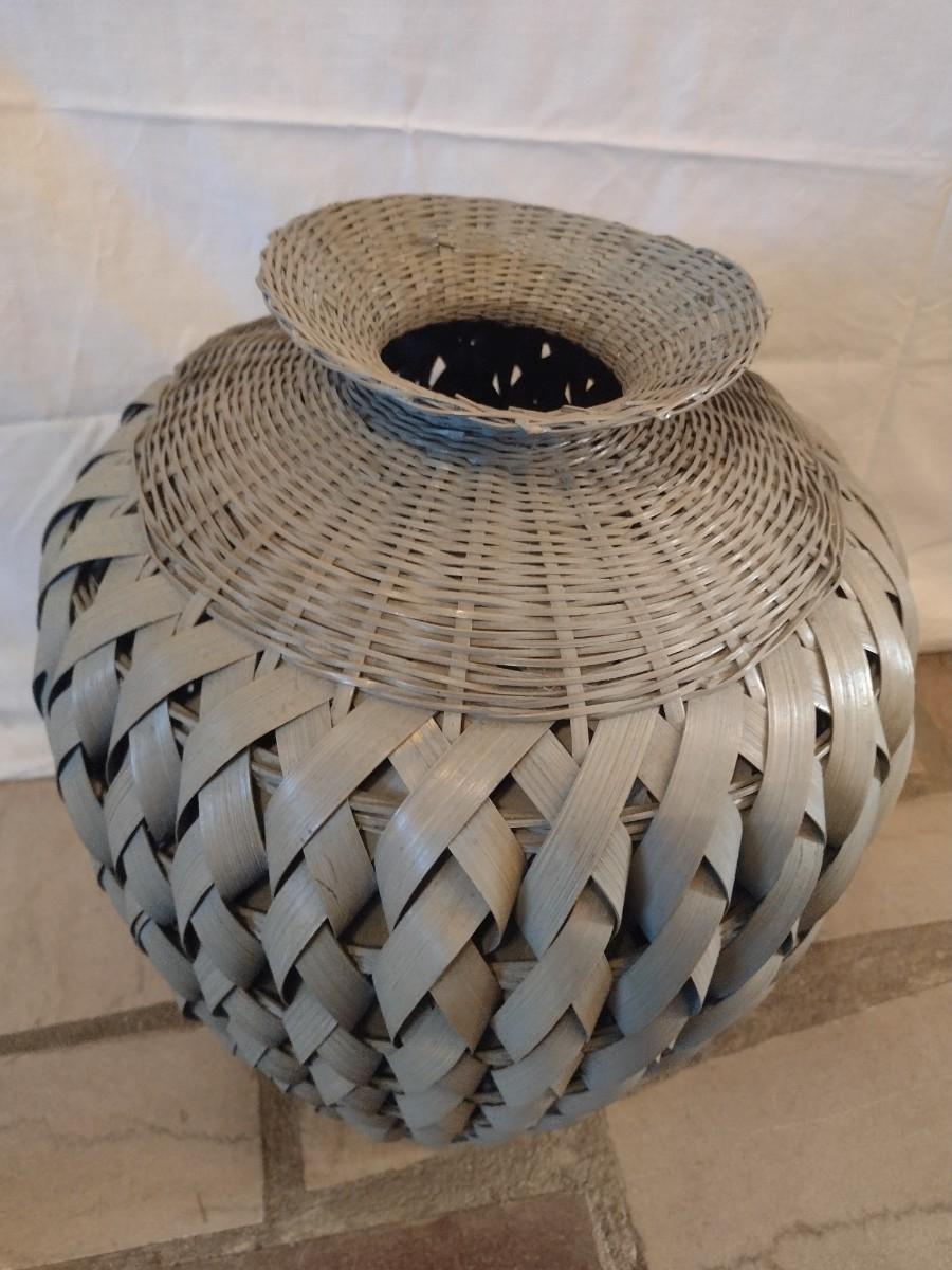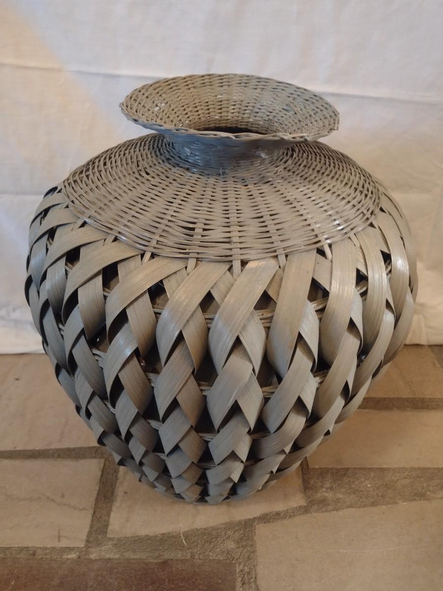 Woven Bamboo and Rattan Floor Vase Basket Gray Finish