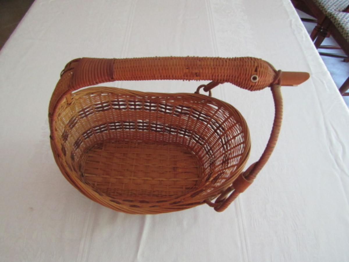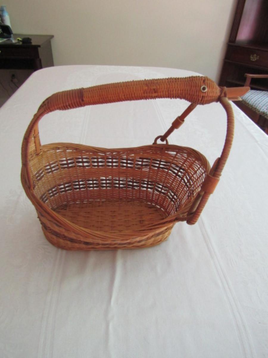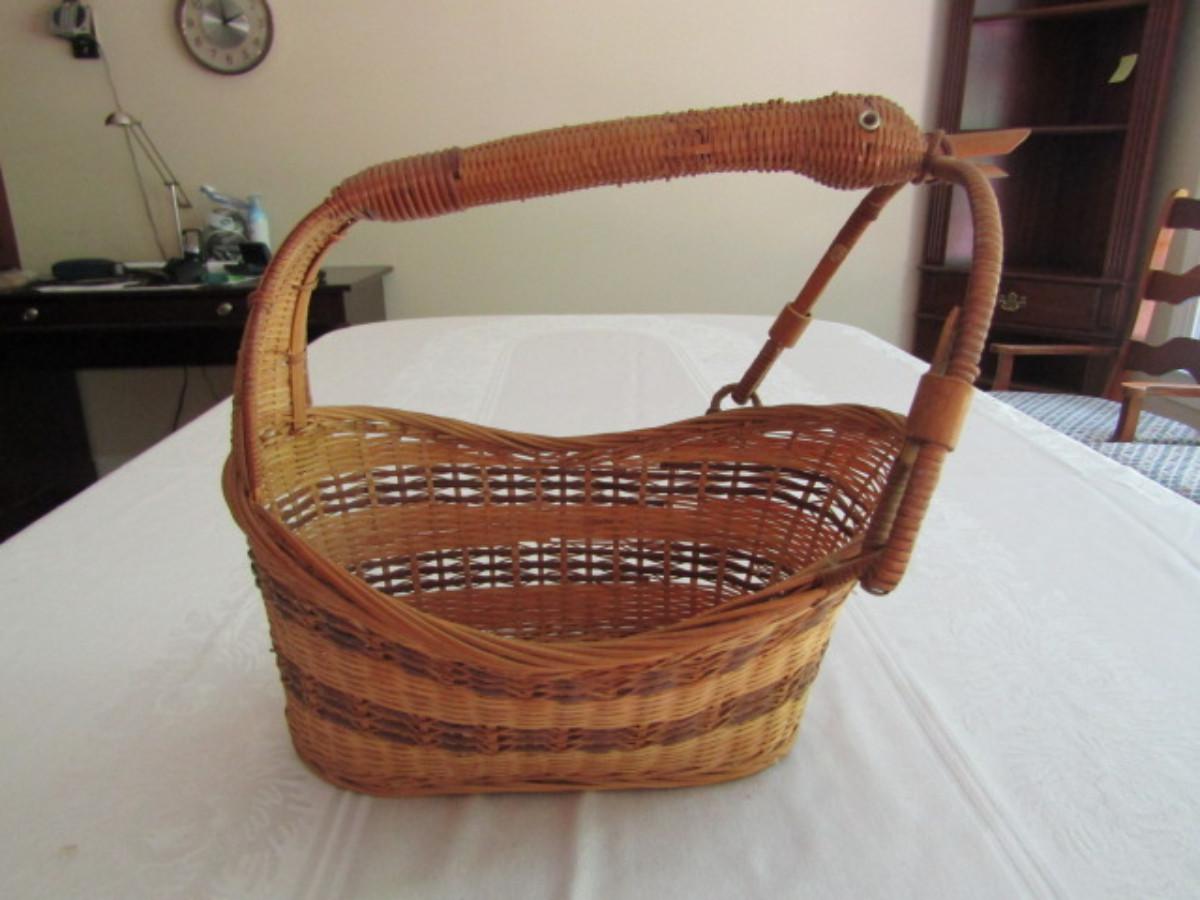 Woven Basket with Goose Design Handle