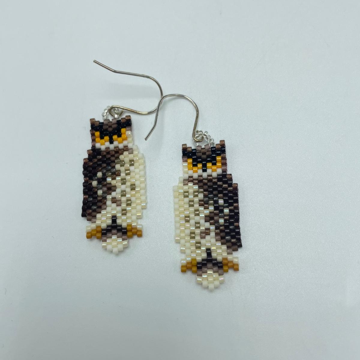 Woven Bead Owl & Wooden Earrings (SJJ - SS)