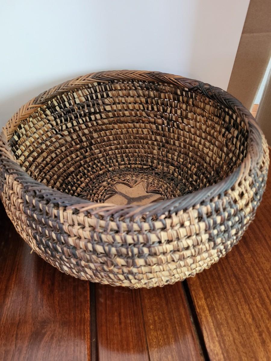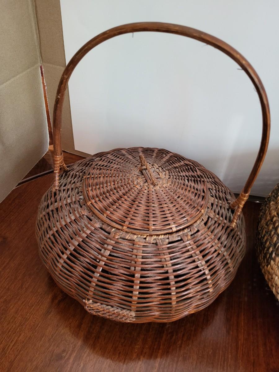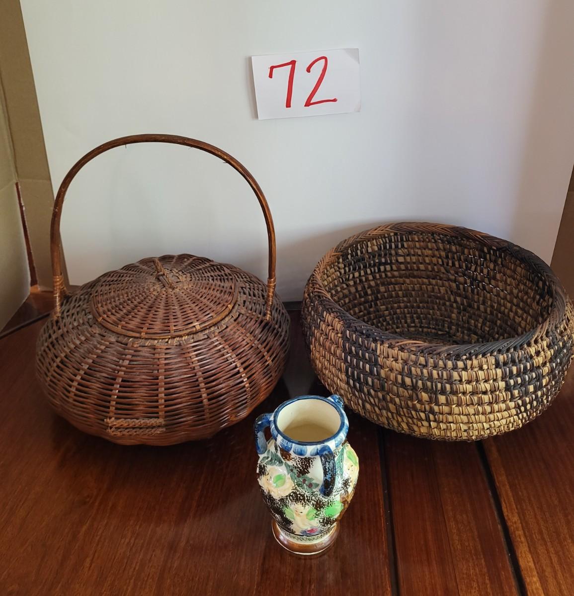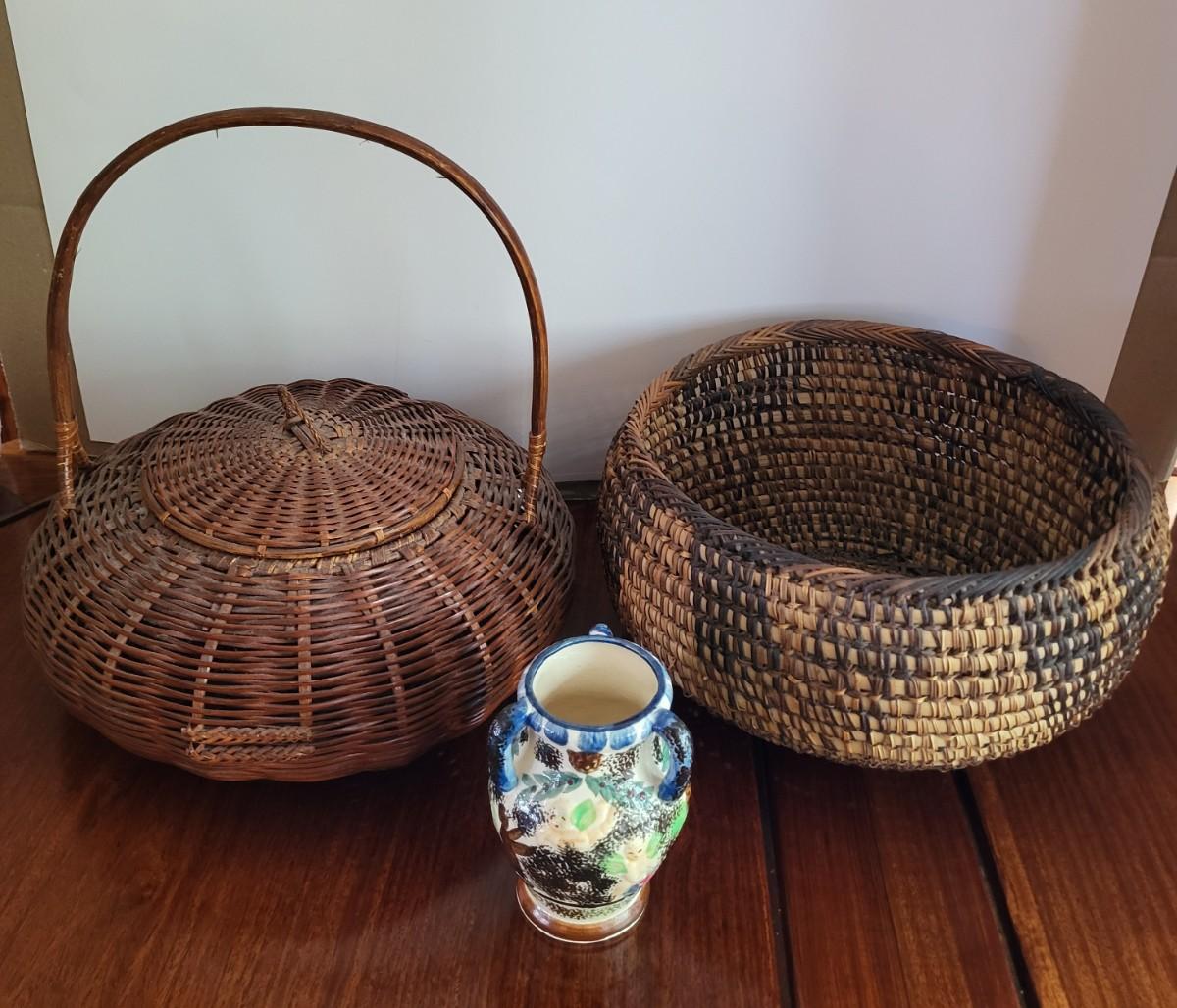 WOVEN COIL AND ASIAN BASKET WITH LID
