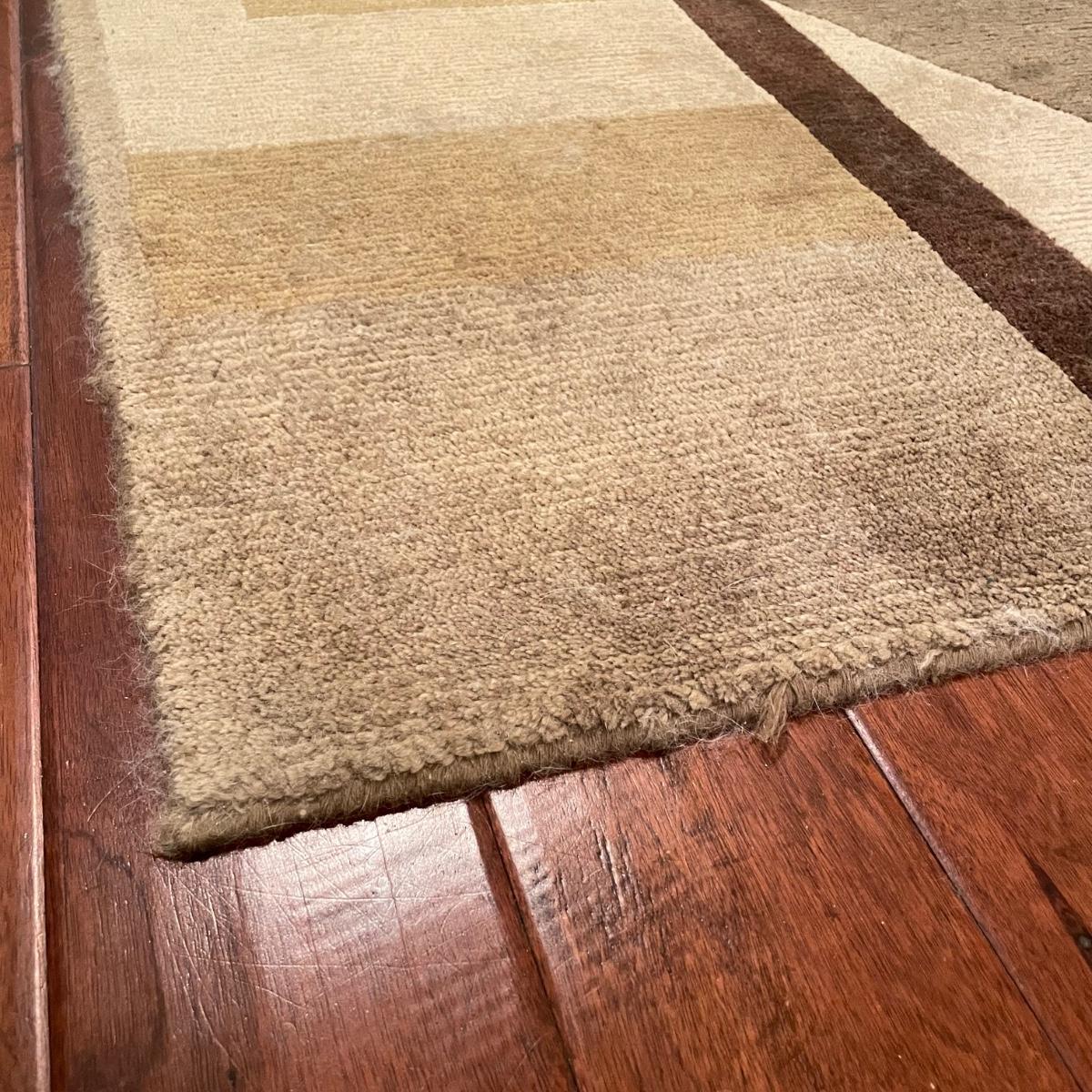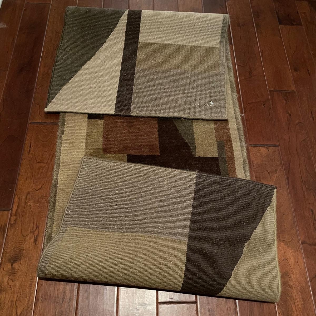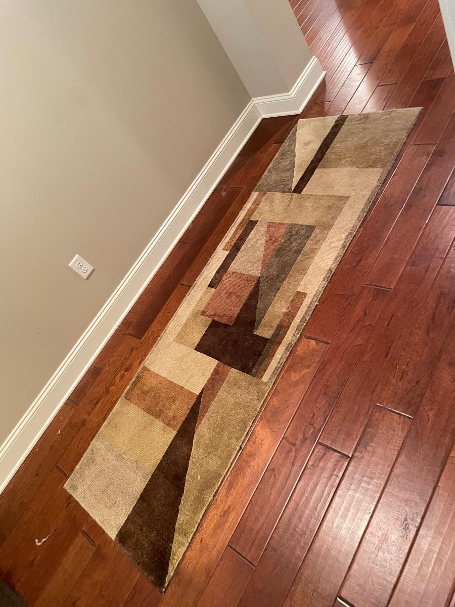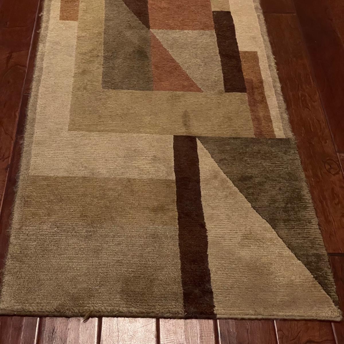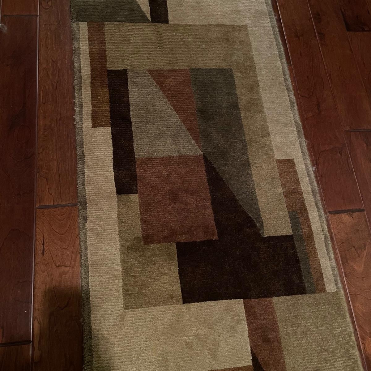 Stunning Earth-toned contemporary runner. Rug looks great with some wear shown throughout the edges and light grey pet hair throughout. Rug is woven, without any makers marking known. It measures 29.75” x 92.5” (approximately 2.5' x 7.75'). See images. Local pick up only.