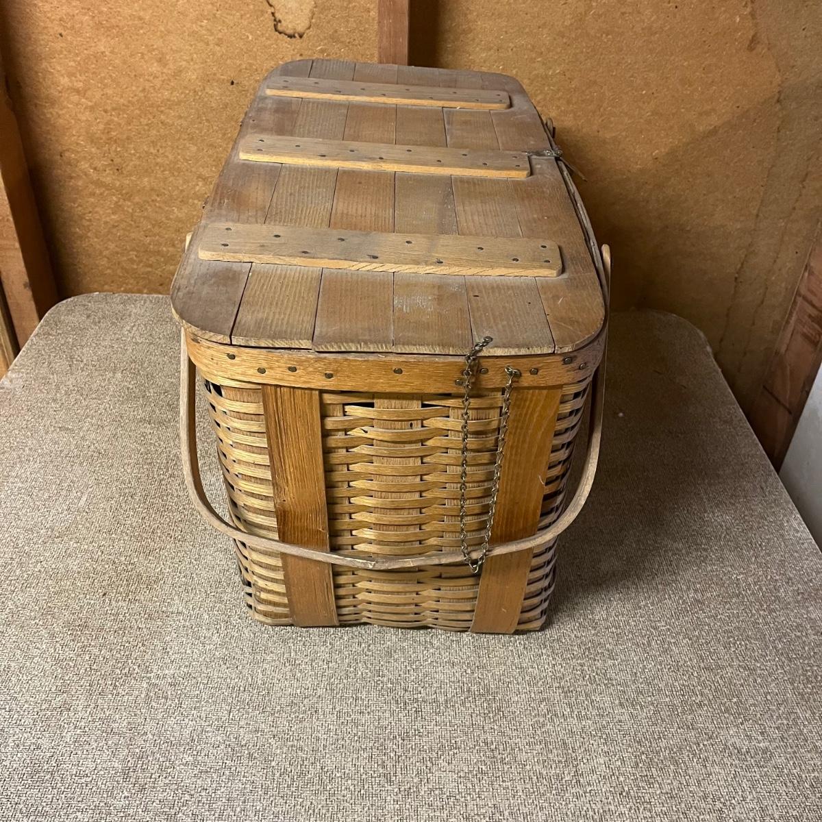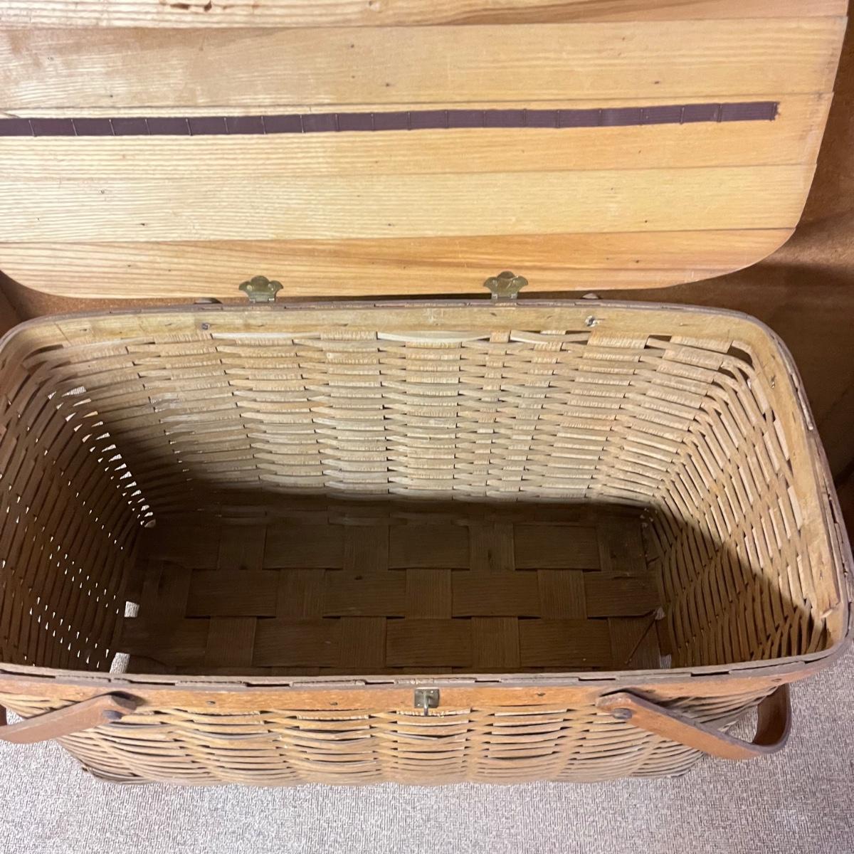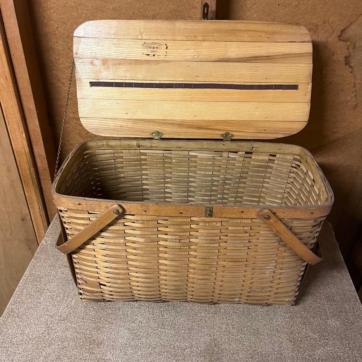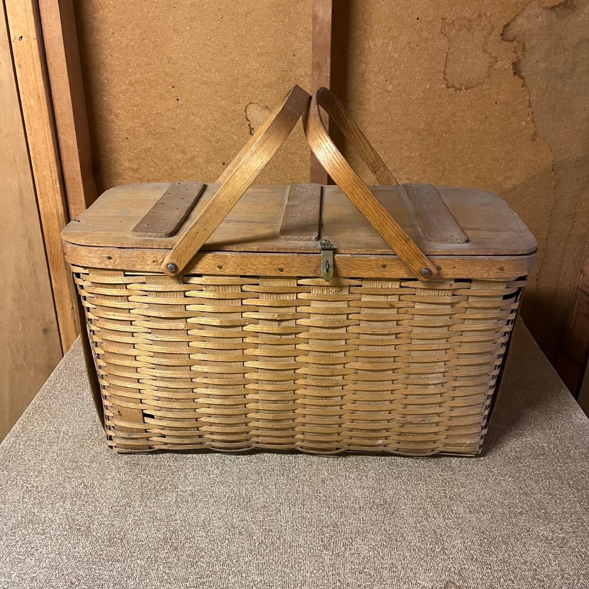 Lot includes a woven picnic basket with removable tray. Basket measures 12” x 24” x 12”.