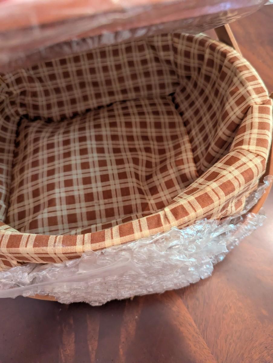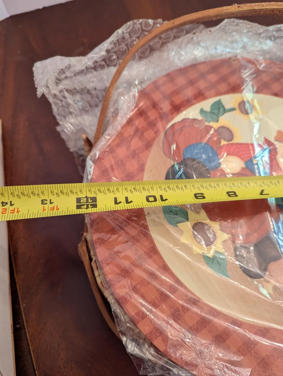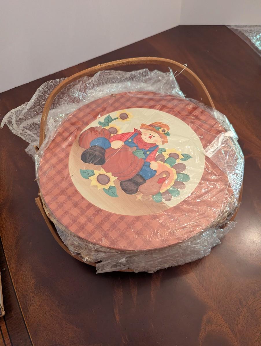 New Harvest Woven Pie/Dessert Basket With Wood Lid/Liner/Handles 12"