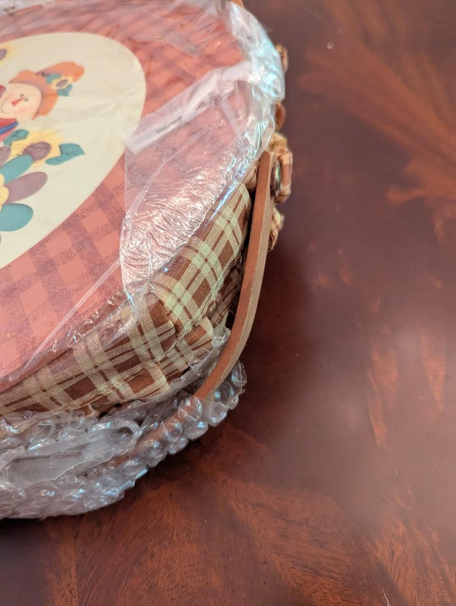 Woven Pie/Dessert Basket With Wood Lid/Liner/Handles 12"