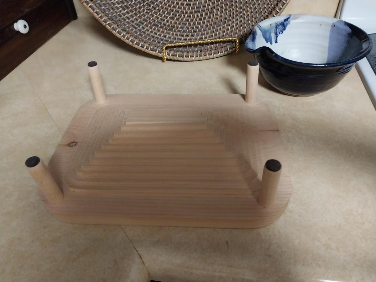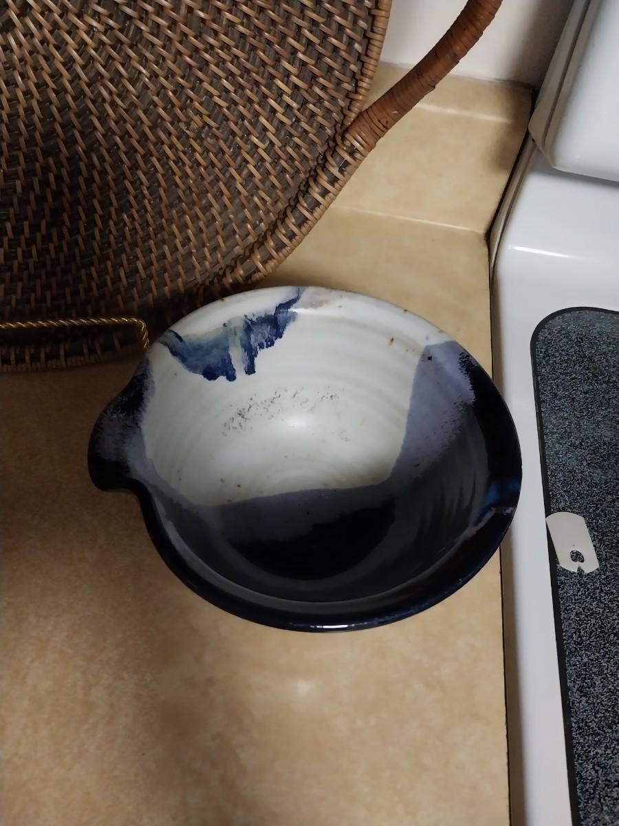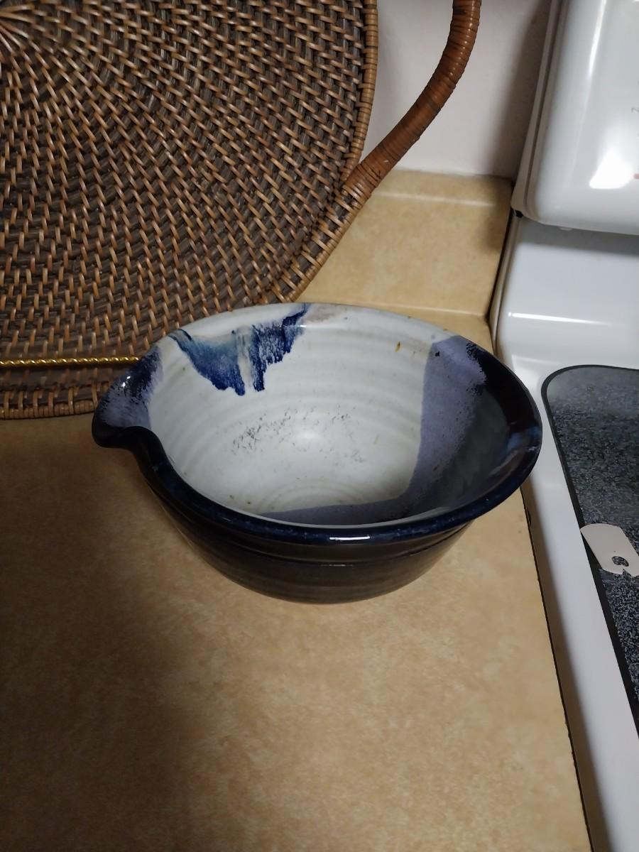 WOVEN PLATTER, WOODEN BOWL AND CLAY BATTER BOWL
