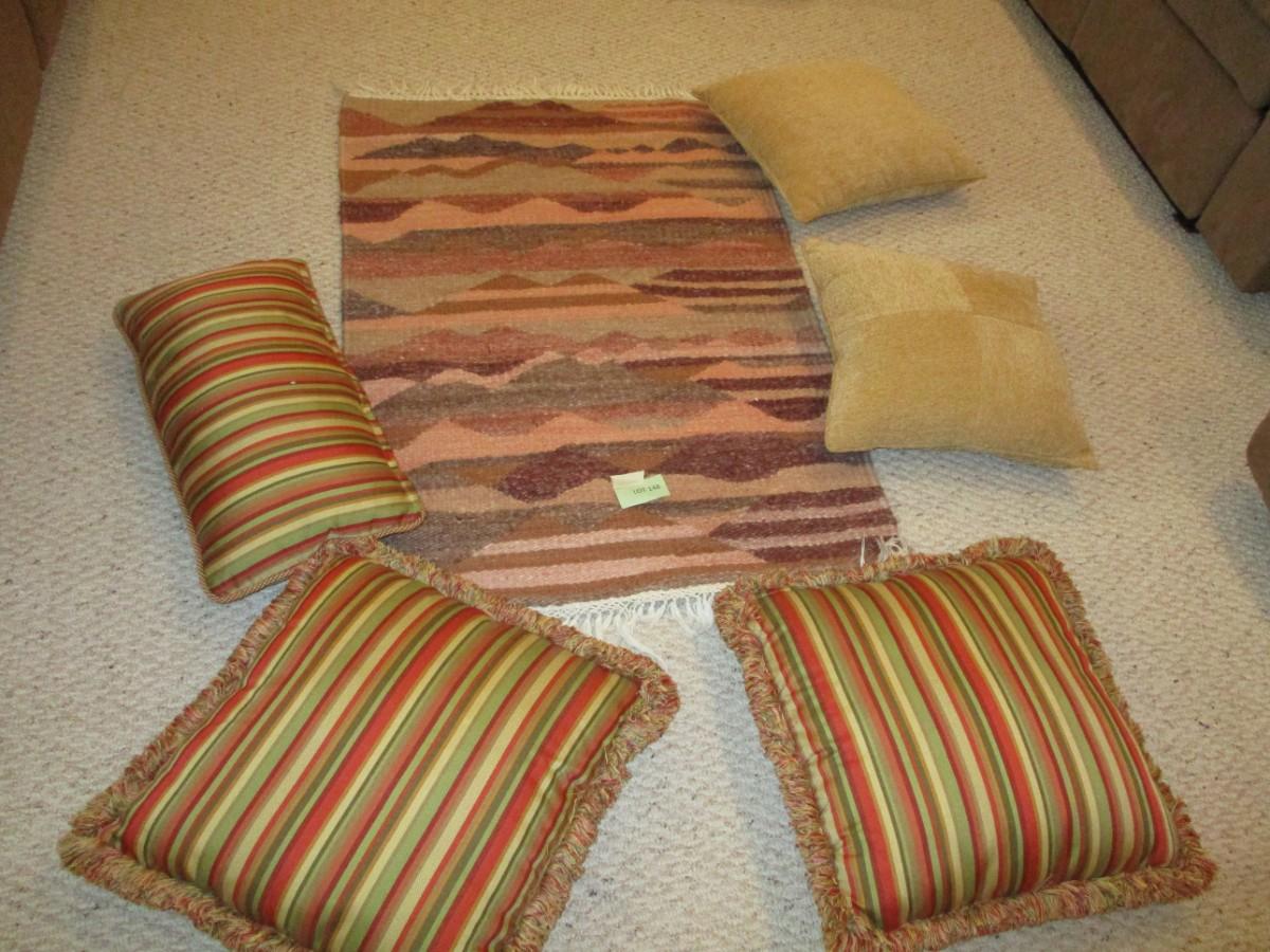 Woven Rug & Throw pillows