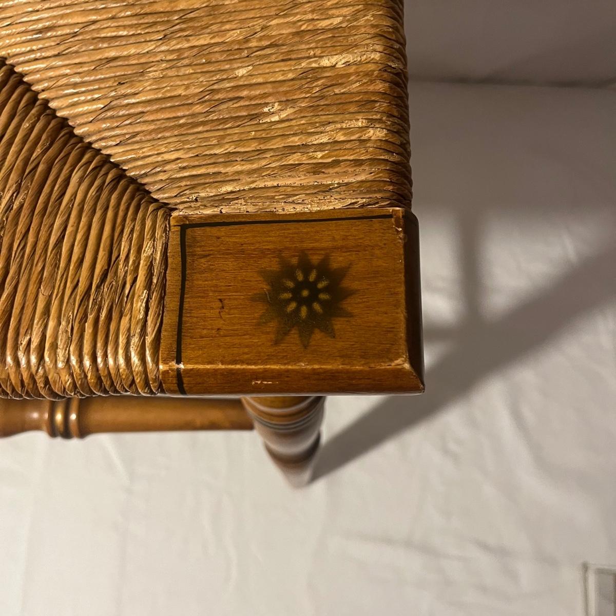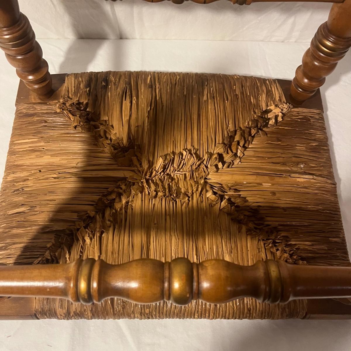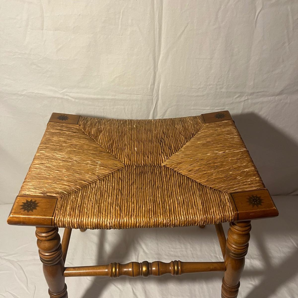 Small woven rush rope bench or footstool with spindle legs. The piece has a few nicks and scratches, see pictures. It measures 13” x 18” x 18”H. Local Pickup Only