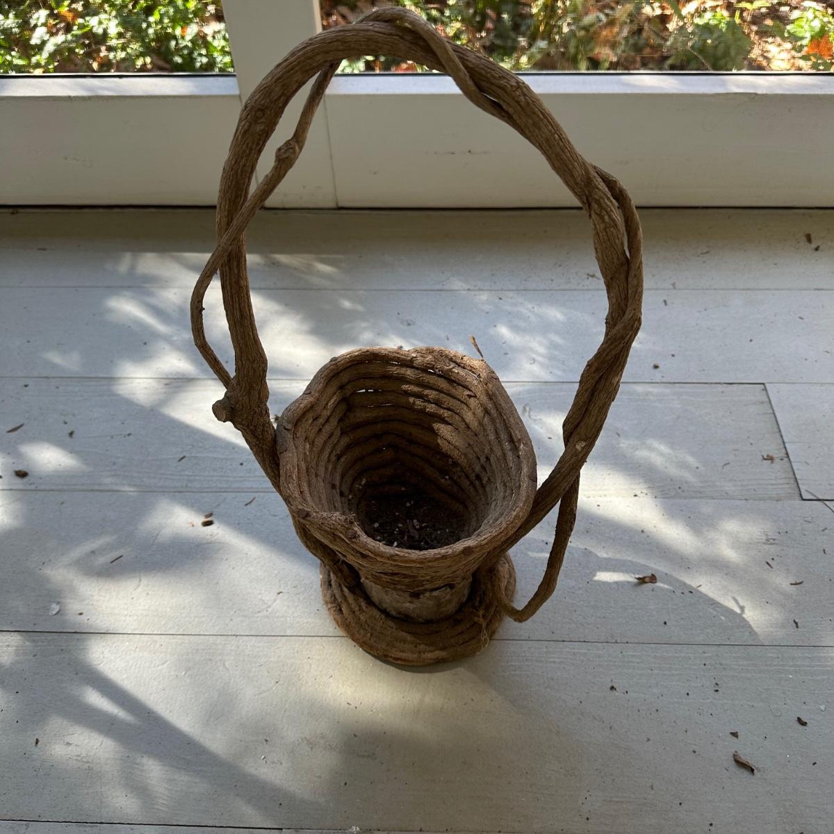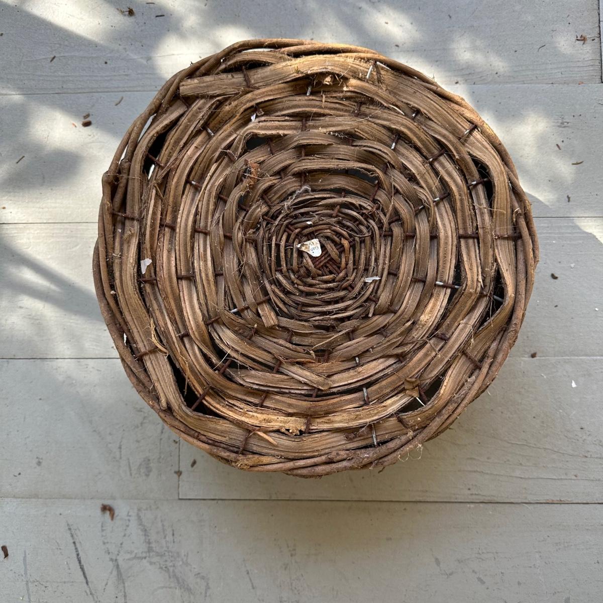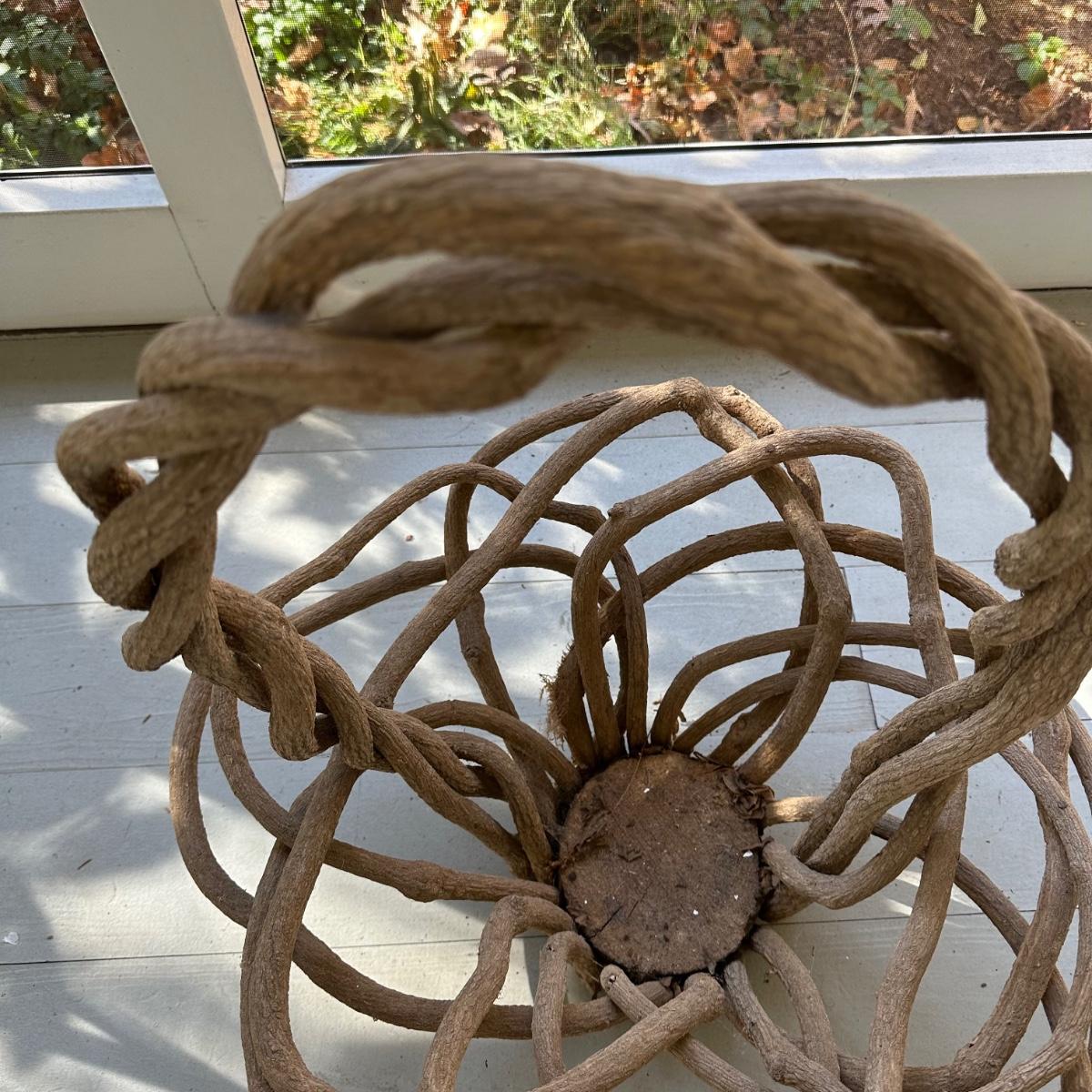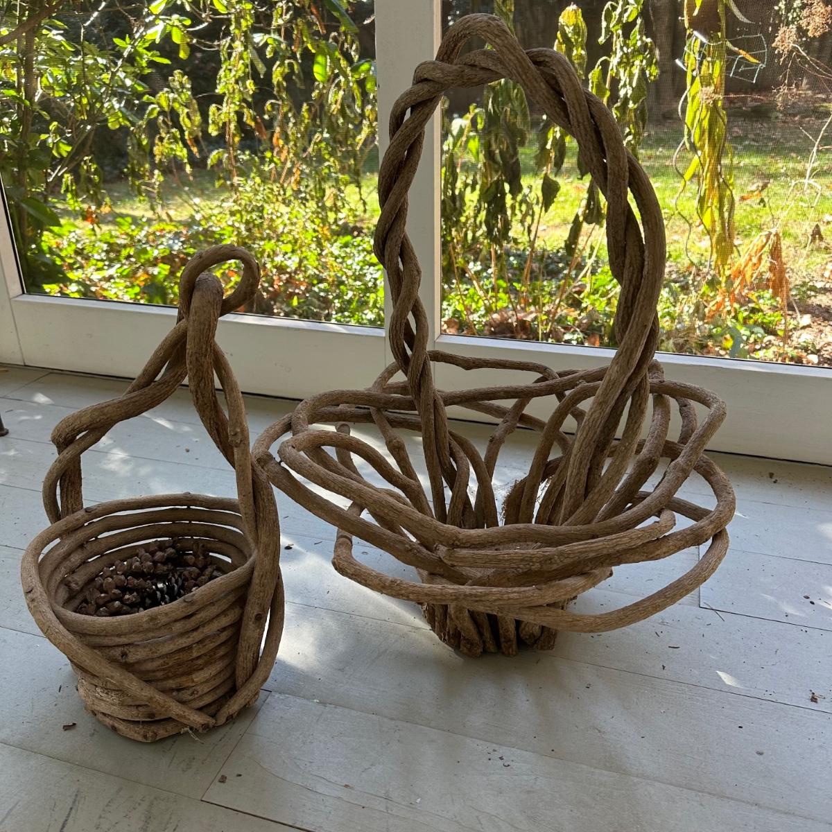 Four baskets, three of which look to be made of woven vines. Tallest basket measures 20”D x 24”H. Shipping available. Shipping can be costly. We suggest contacting our preferred local shipping provider, Postage Express, with dimensions and getting an estimate before bidding: (828) 670-5501 or postageexpress@yahoo.com.