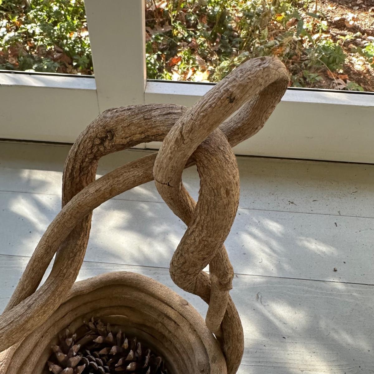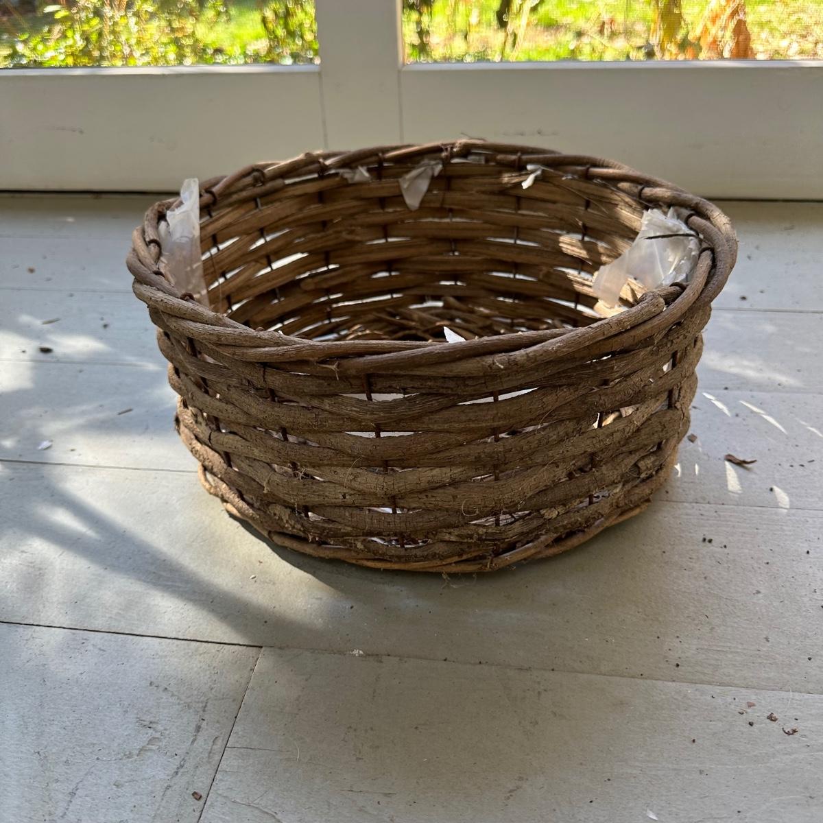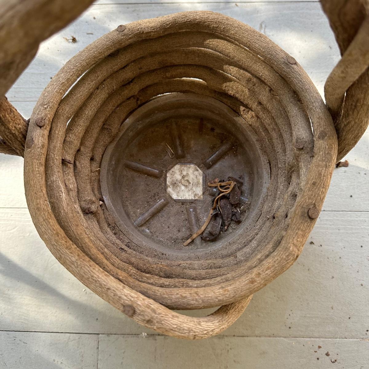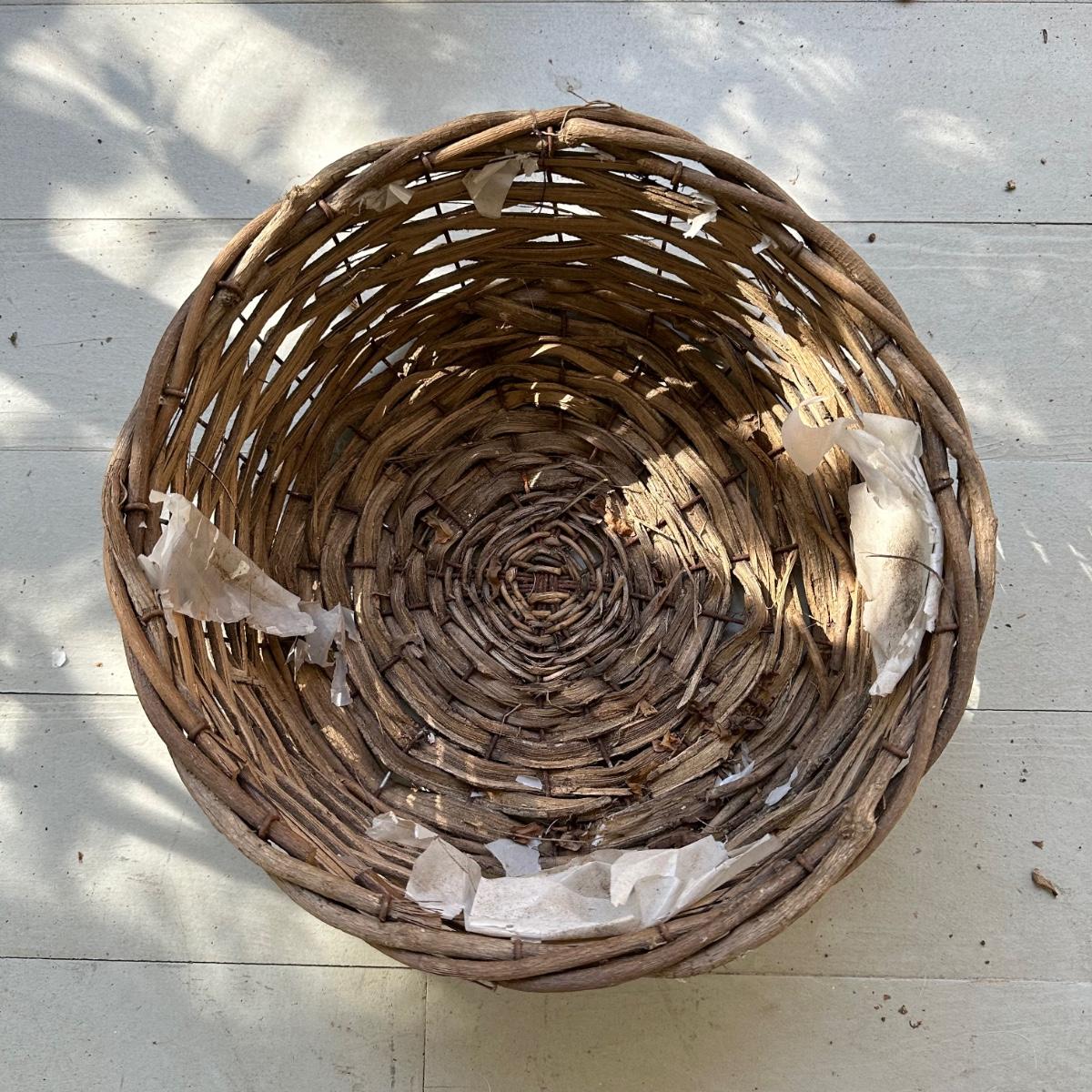 Four baskets, three of which look to be made of woven vines. Tallest basket measures 20”D x 24”H. Shipping available. Shipping can be costly. We suggest contacting our preferred local shipping provider, Postage Express, with dimensions and getting an estimate before bidding: (828) 670-5501 or postageexpress@yahoo.com.