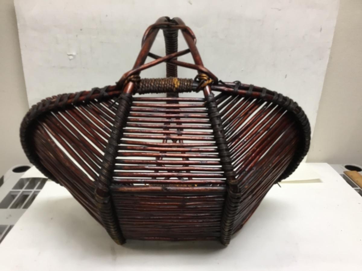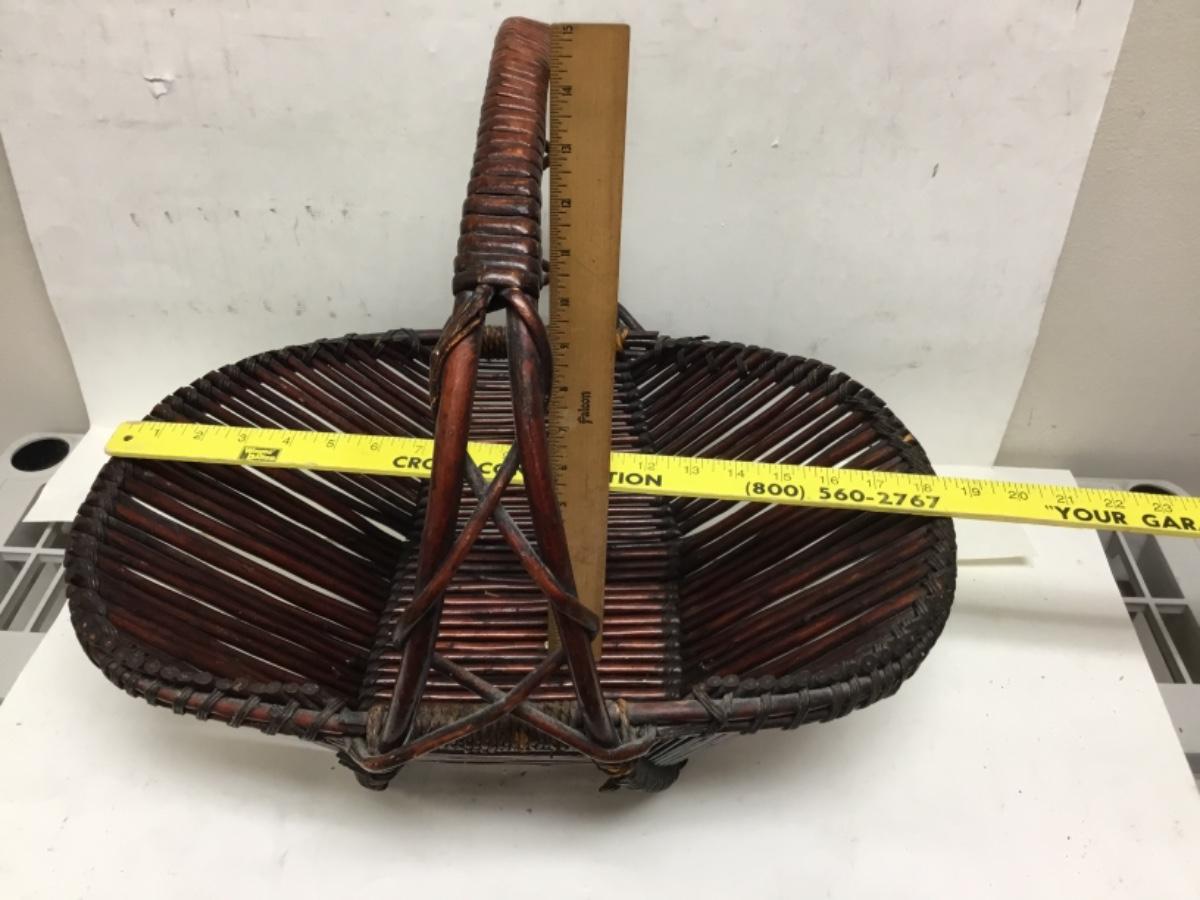 Vintage Dark Finish Stick Reed Wood Basket. Good condition.