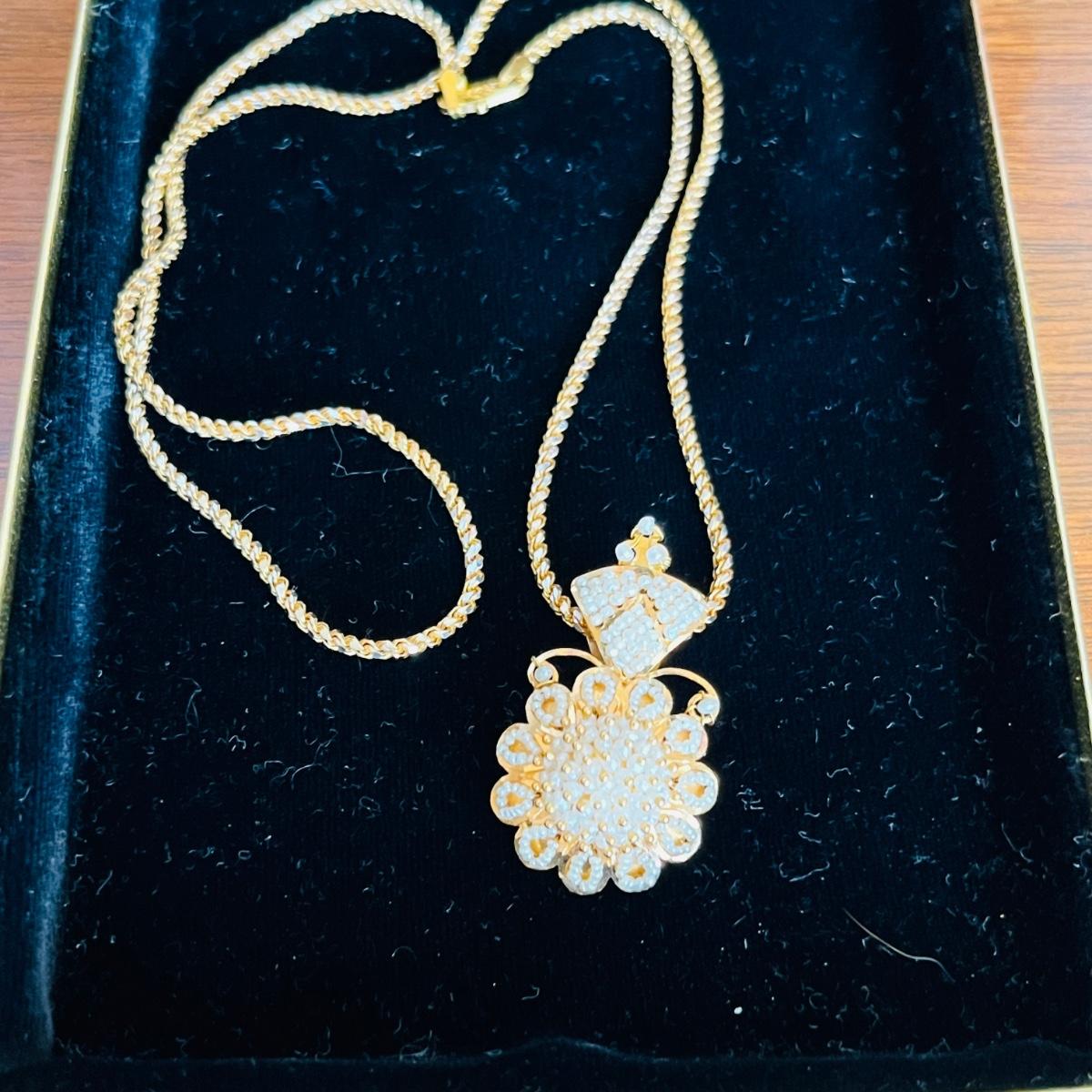 Pendant is marked 875 (21K) it weights 7.5 grams total weight.