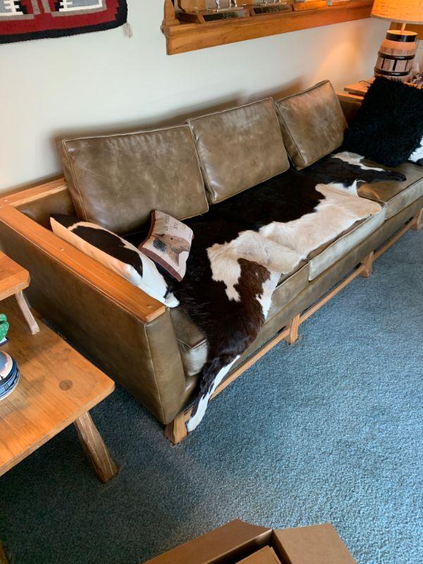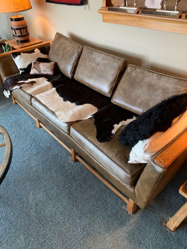 Leather & Oak, 88" long x 25: tall x 32" deep SUPER condition.