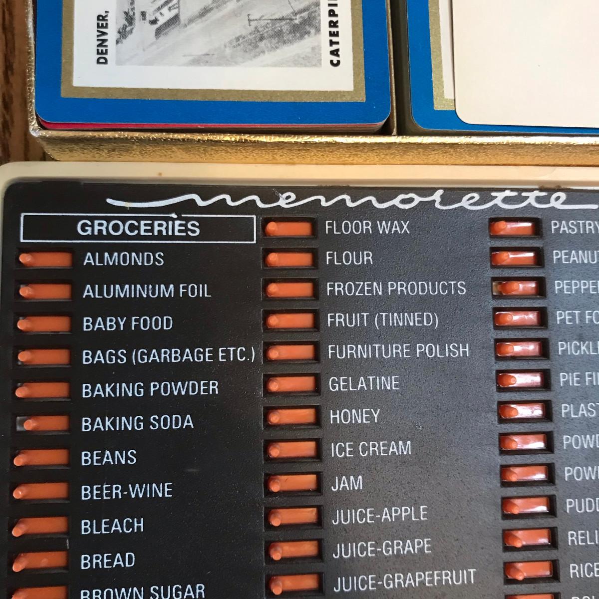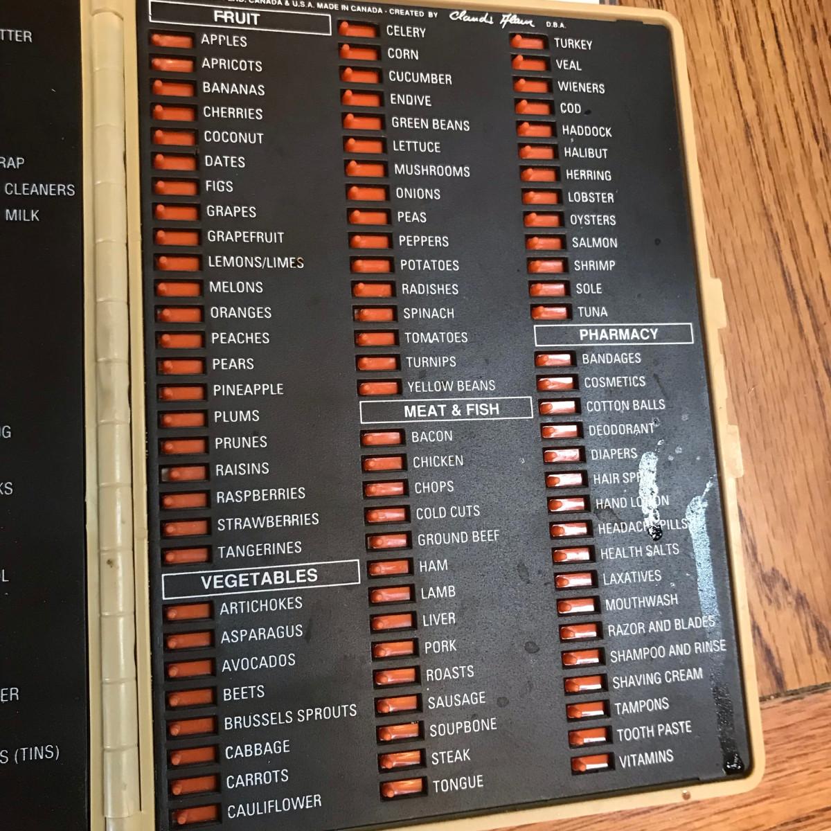 This padfolio grocery list is too cool! Vintage 60s. Magnet to hold on refrigerator, folds up to take to the store!