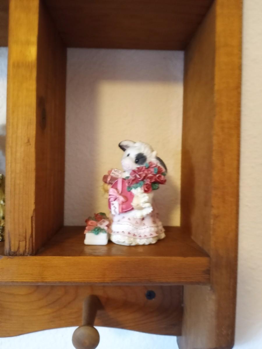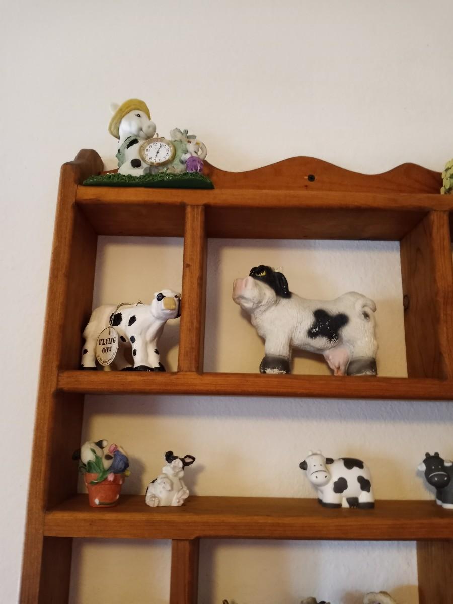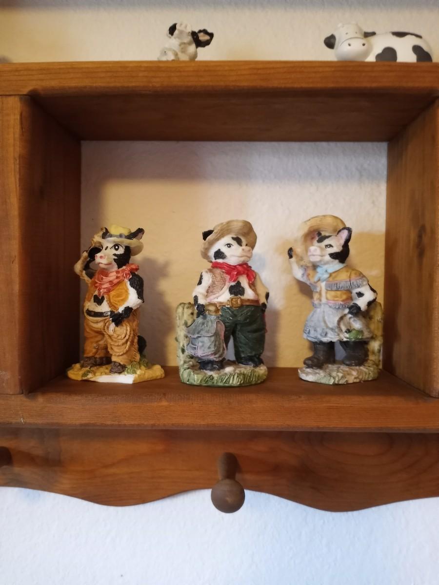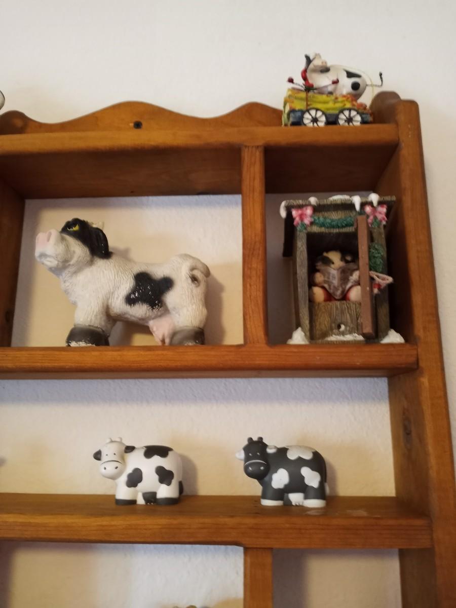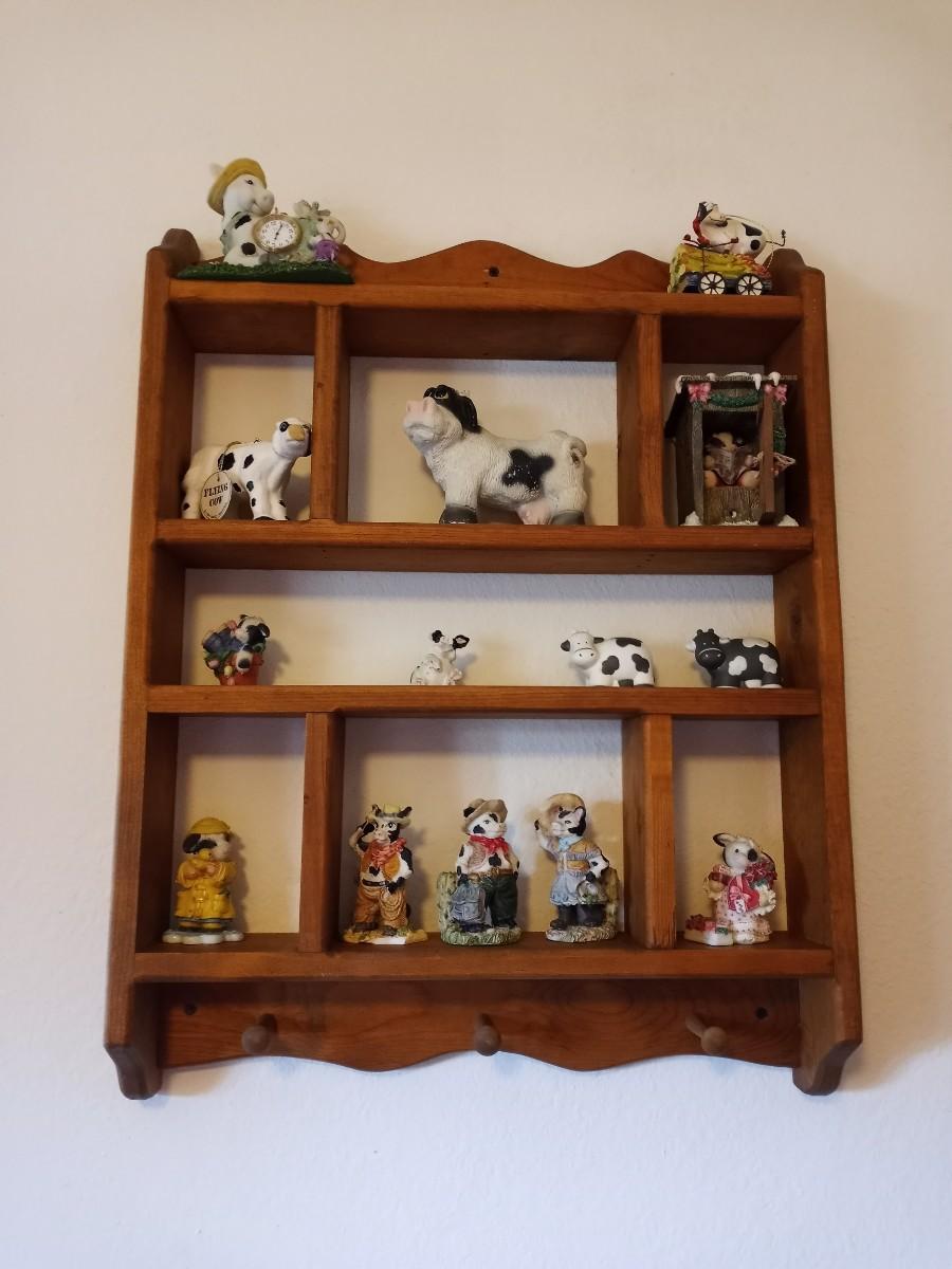 WOODEN WALL SHELF WITH COW FIGURINES
