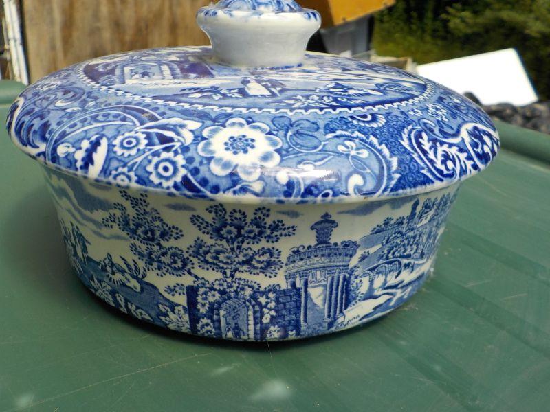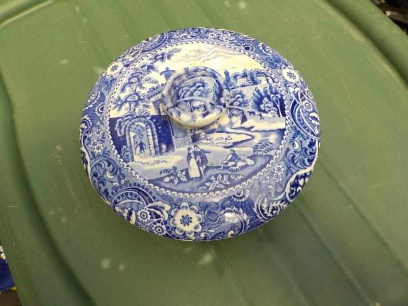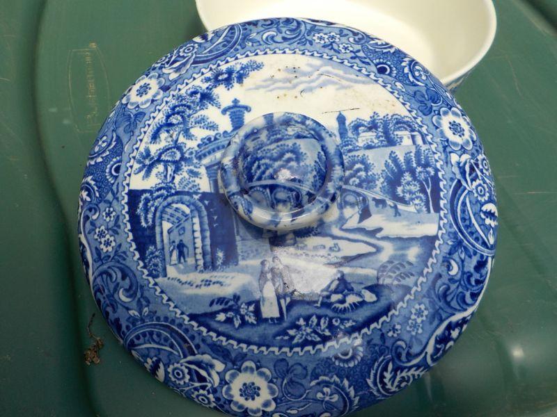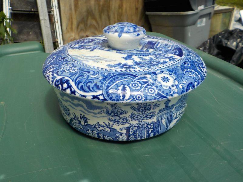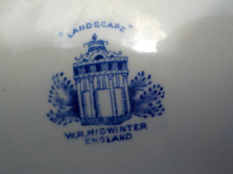 "W.R. Midwinter England", "Landscape" sugar dish with cover.