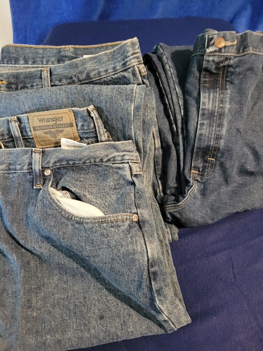 2 pr wrangler jeans 42x32 1pr wrangler carpenter jeans 40x32 all are in good condition