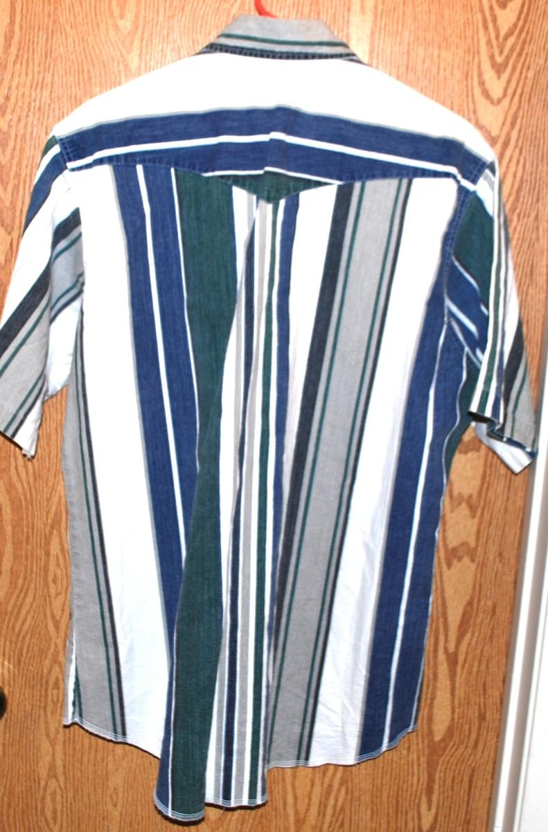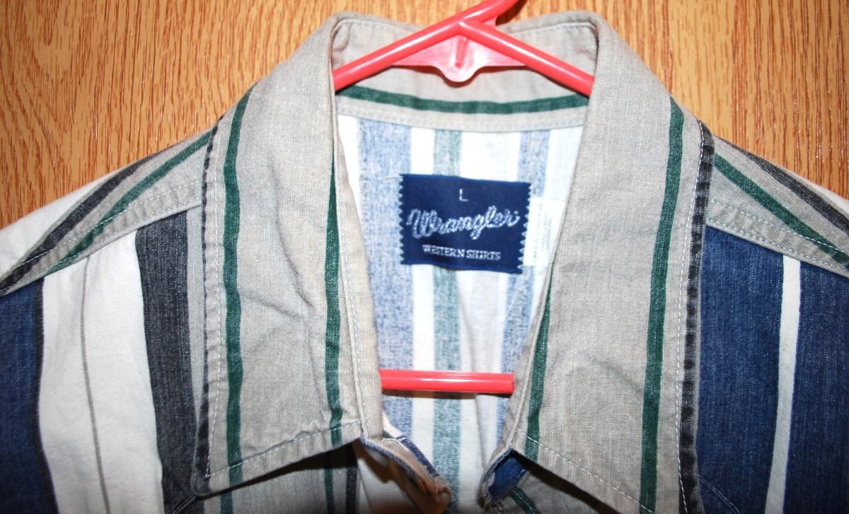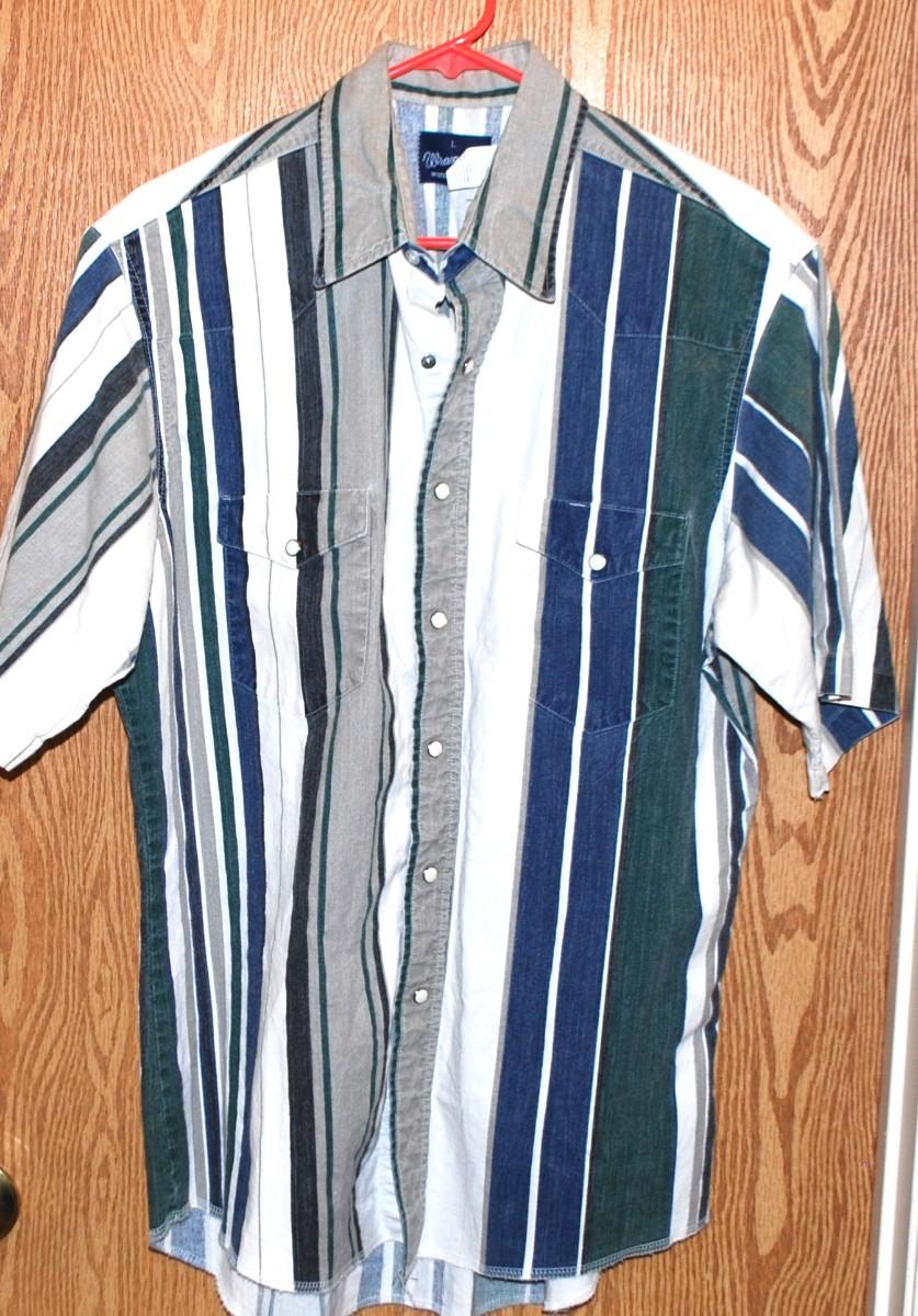 "Wrangler-Western Shirts" Brand - Blue Stripe Shirt with Pearl Style Snaps Size: LARGE