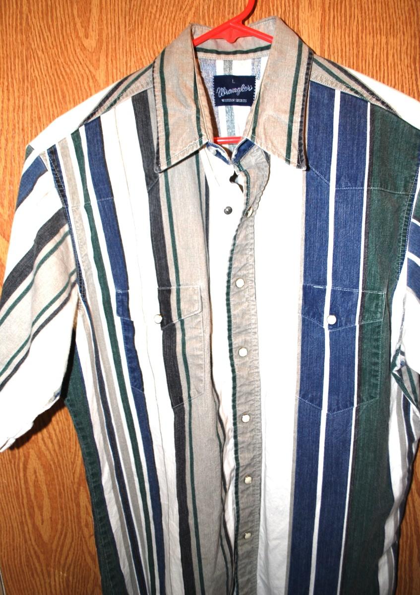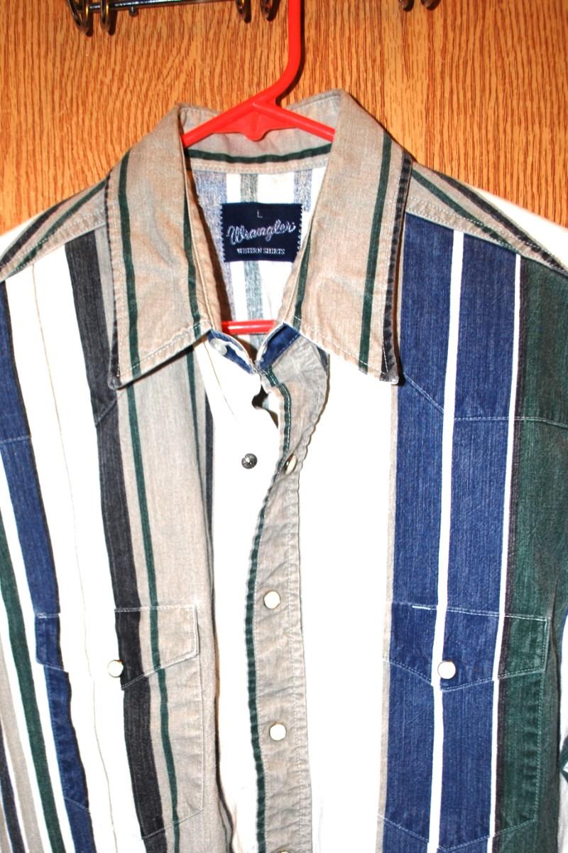 "Wrangler-Western Shirts" Brand - Blue Stripe Shirt with Pearl Style Snaps Size: LARGE