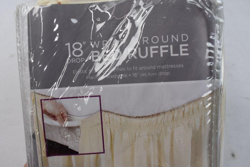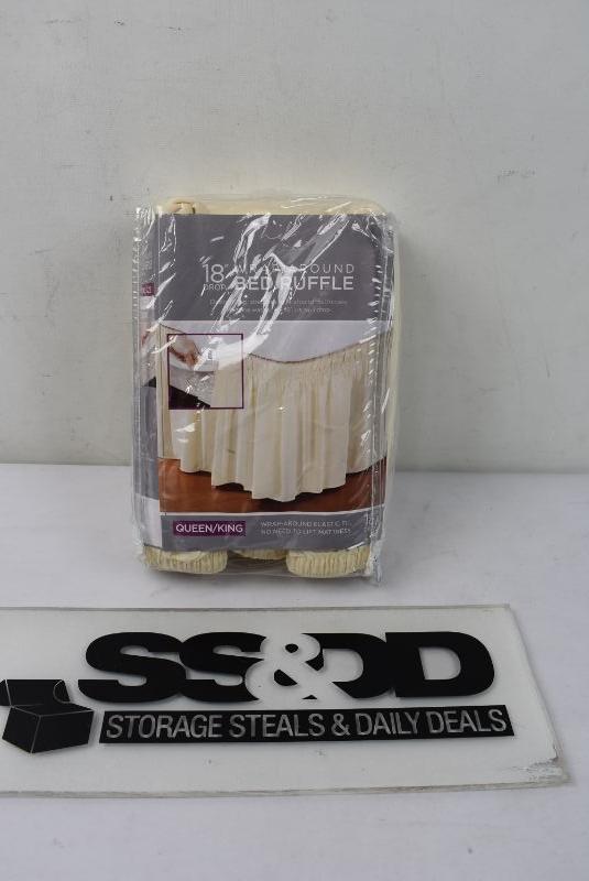 Wrap Around Bed Ruffle (Skirt) 18" Queen/King Elastic Fit Cream - New