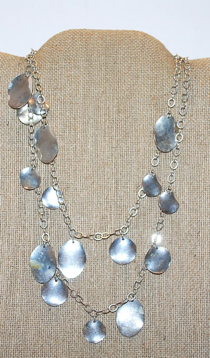 WRAP-AROUND Curved Silver Disks NECKLACE with Silver Tone Chain Links 40" L