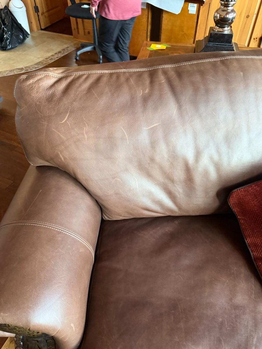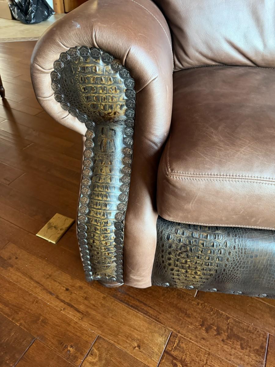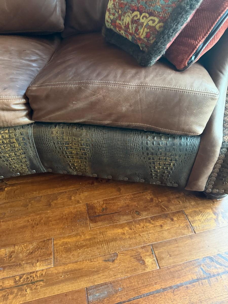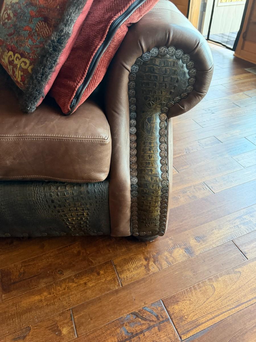 Curved Shape Brown Leather Couch With Faux Alligator and Nail Head Trim (LR1)