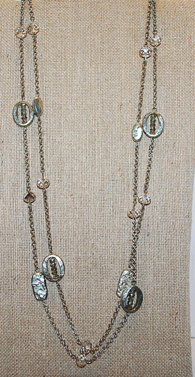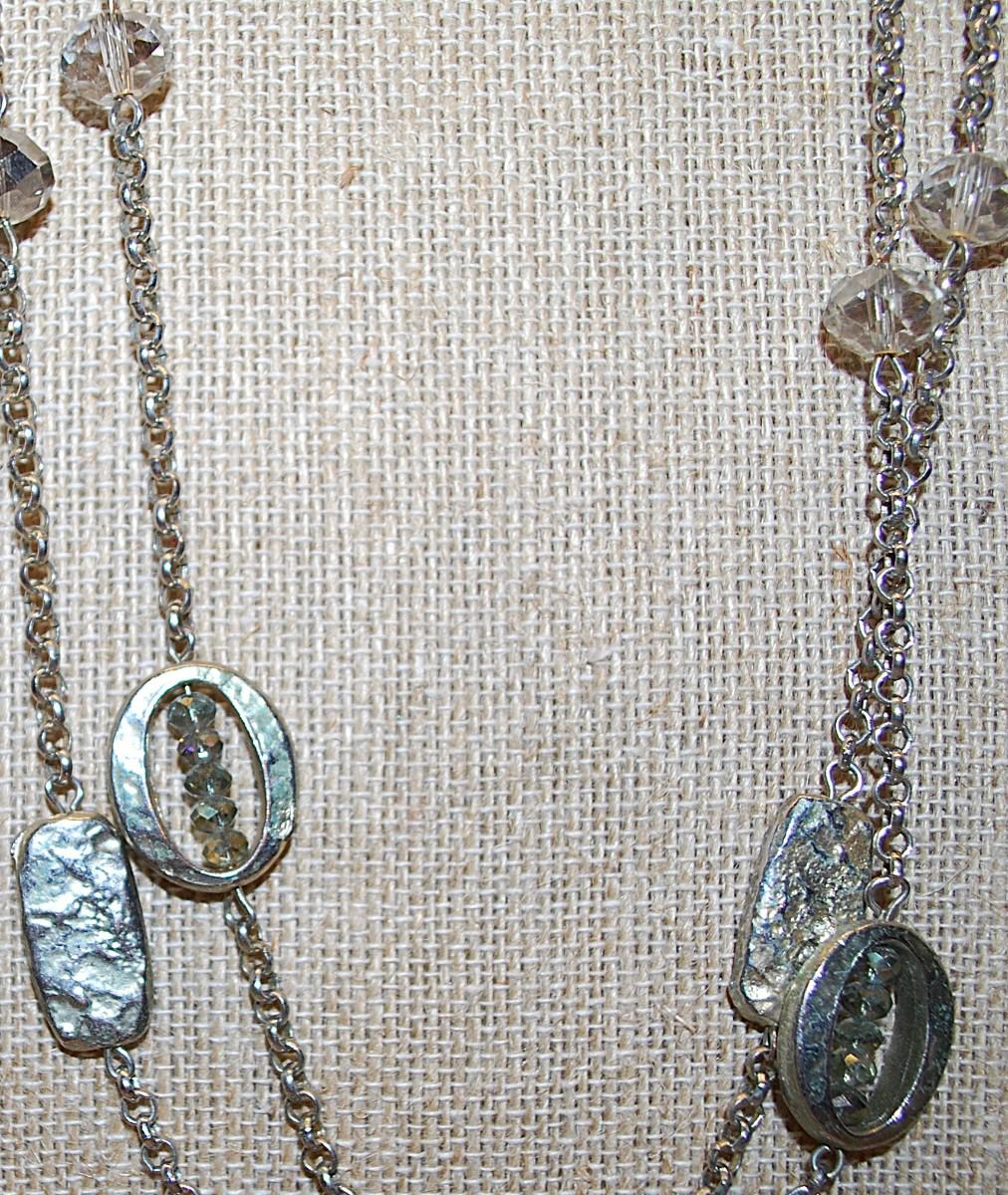 WRAP-AROUND Mother-Of-Pearl Style NECKLACE with Ovals & Rectangles and Clear Accent Stones 46" L
