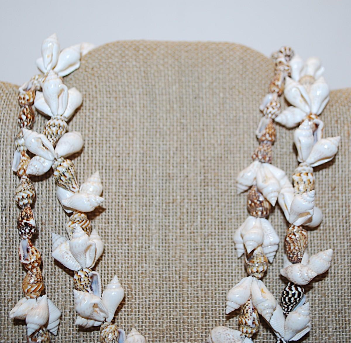 WRAP-AROUND White & Brown Speckled Whole SHELL NECKLACE 32" L